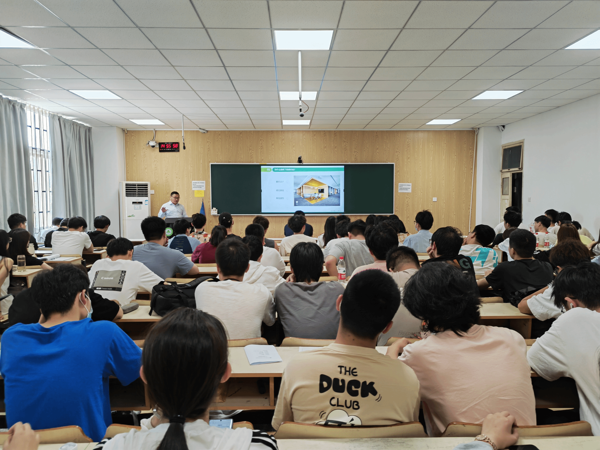 王华结合自身经历将职业规划道路细化为七项,逐一向同学们介绍职业规划的重要性以及做好职业规划的方法。他指出,做好职业规划要明确目标方向、有计划开展学习并敢于尝试挑战。刘帅将职业规划总结为“人、事、物、势、客”五字纲要,并一一讲解。两位员工的精彩演讲带动了同学们对职业规划的思考,引发了同学们积极的讨论。针对同学们对于职业规划以及木材行业发展的问题,两位员工给出了详尽的解答,并鼓励同学们努力学习,为我国木材行业发展添砖加瓦。