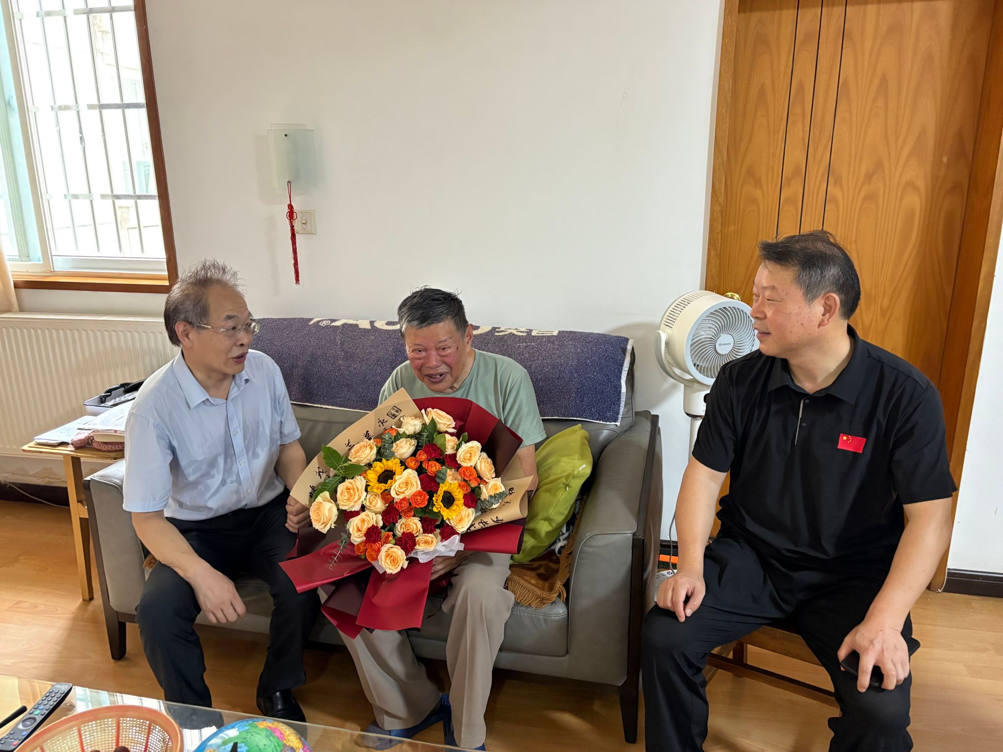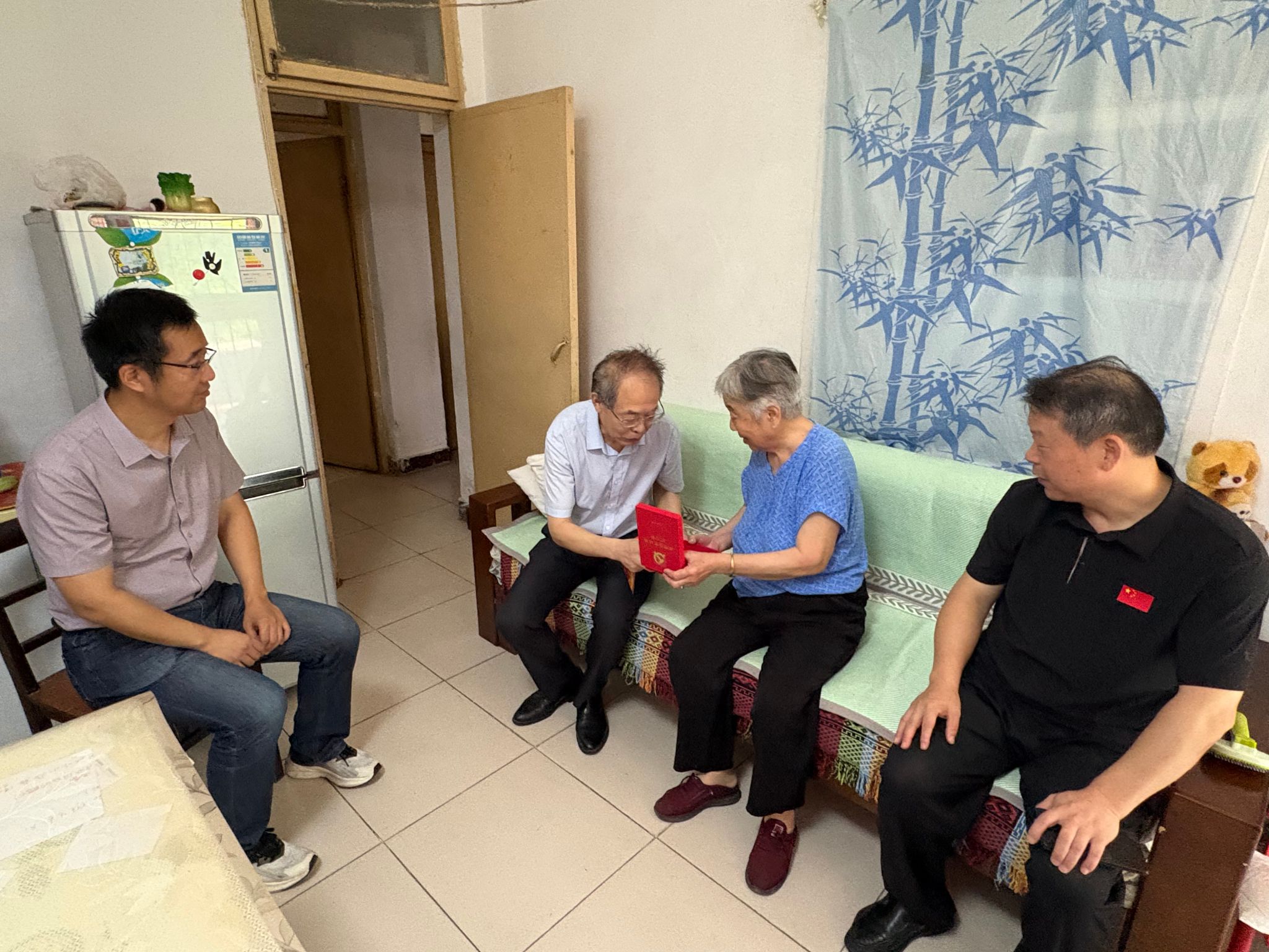 公司一行先后前往吕维英、沈健章等离退休老党员家中,详细了解他们的身体状况、生活需求及家庭情况,叮嘱他们注意保重身体,并代表学院感谢他们长期以来为党的教育事业和学院发展作出的贡献。慰问过程中,学院为老党员们送上鲜花、慰问金,并为吕维英老师颁发了“光荣在党50年”纪念章。