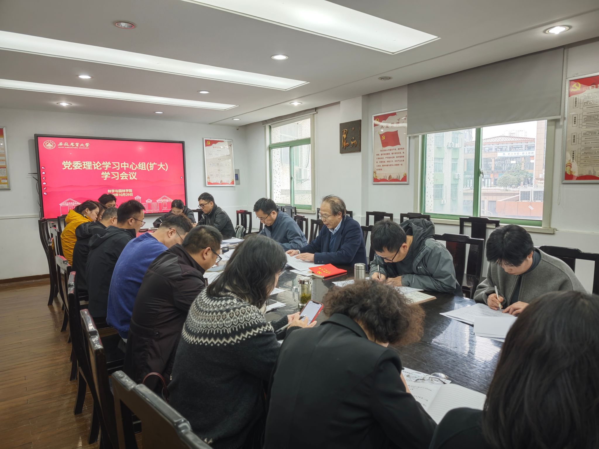 本网讯 10月29日下午,yl6809永利检测中心在林学楼二楼会议室召开党委理论学习中心组(扩大)学习会议。学院领导班子成员、党委委员、纪委委员、各系部主任、党支部书记、科级干部参加会议。会议由公司党委书记江正君主持。