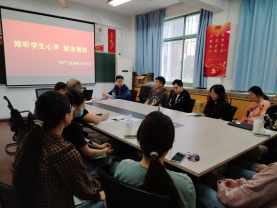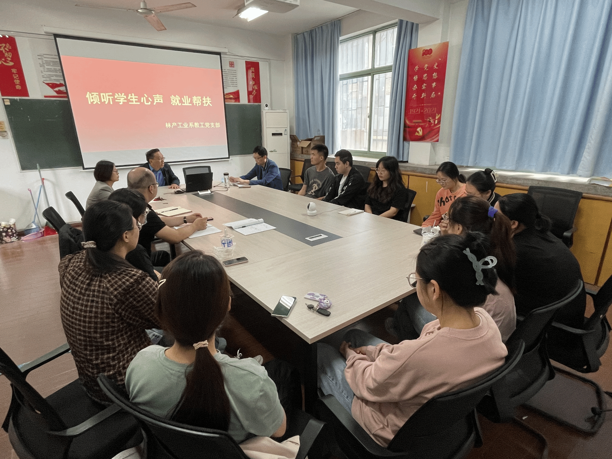 为深入学习贯彻党的二十大精神,推动学习贯彻习近平新时代中国特色社会主义思想主题教育走深走实,深入推进“我为师生办实事”实践活动,切实帮助就业困难员工尽早尽快就业,5月5日上午,林产工业系教工党支部针对19级木材科学与工程专业尚未就业的毕业生开展“倾听心声,就业帮扶”活动。学院经理刘盛全、林产工业系教工党支部全体支委、19级木材科学与工程专业班主任余敏和尚未就业的全体毕业生参加了此次活动,活动由林产工业系教工党支部书记郭勇主持。