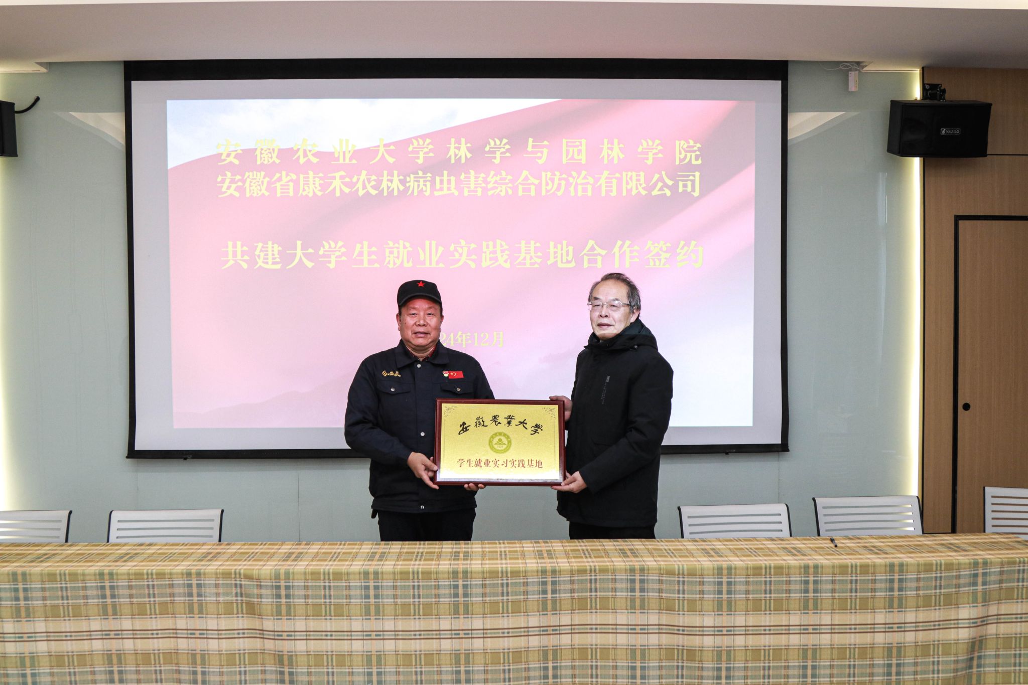 本网讯 12月13日,yl6809永利检测中心与安徽省康禾农林病虫害综合防治有限公司进一步深化交流合作,并建立就业实训基地。公司党委书记江正君、林学系系主任唐雪海、安徽省康禾农林病虫害综合防治有限公司董事长黄国治及相关部门负责人出席就业实训基地签约仪式。