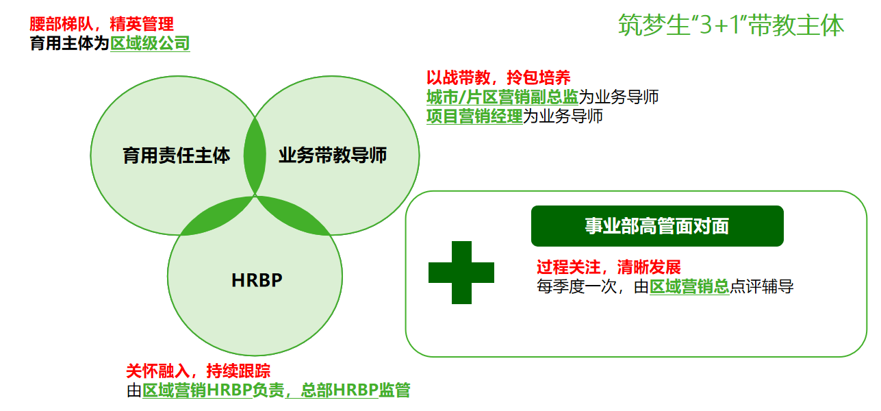 高潜拔优培养:发现高潜人才,指定高能级人员带教,助力高潜人才加速出苗;