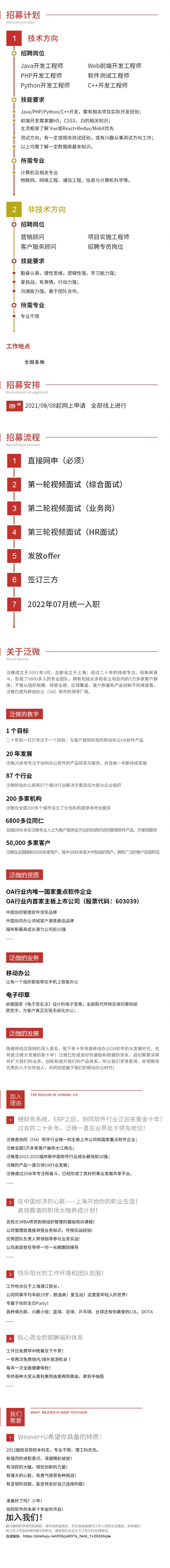 腾讯战投企业——上海泛微网络22届校园招聘,三月中下旬群内会有直播答疑活动!