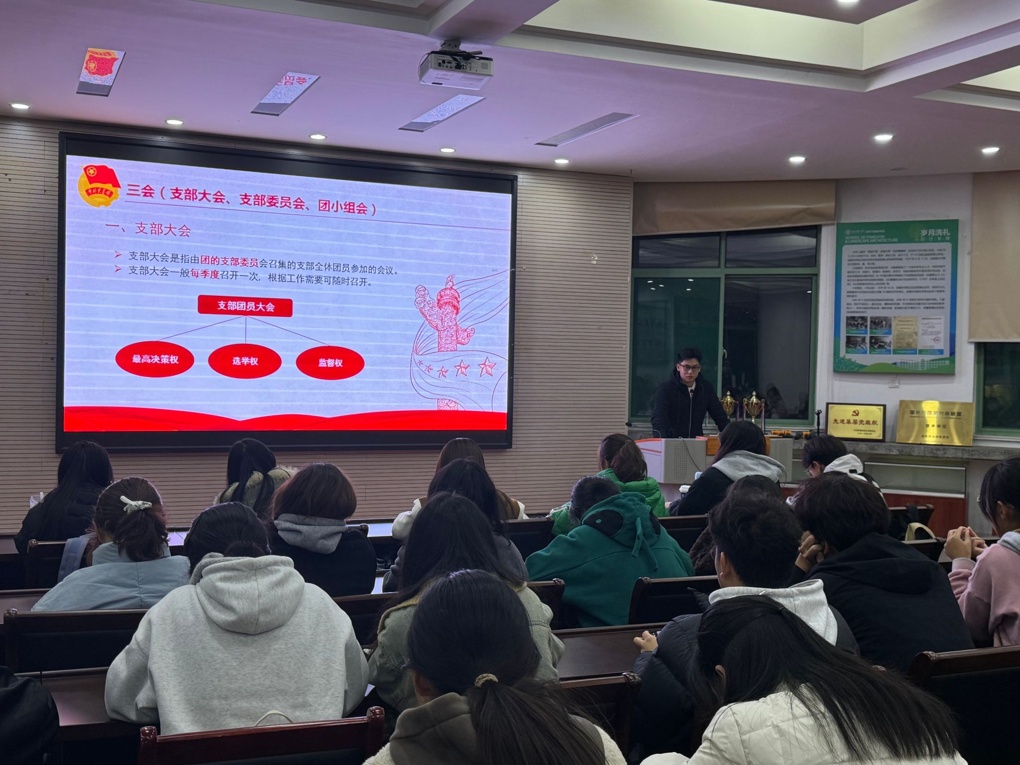 公司团委老师分别对团支书、宣传委员等团干部的工作职责进行了说明,并详细解读了“三会两制一课”制度。对“三会”中支部大会的民主决策流程、支部委员会的统筹规划要点、团小组会的分组研讨方式,“两制”里团员教育评议制度的评定标准与实施细则、团员年度团籍注册制度的规范要求与时间安排,以及“一课”即团课教育的课程内容设计、教学方法运用等方面都做了全面透彻的阐释,让在场的团干部们对自身职责与制度内涵有了更为深刻且准确的理解与认知。