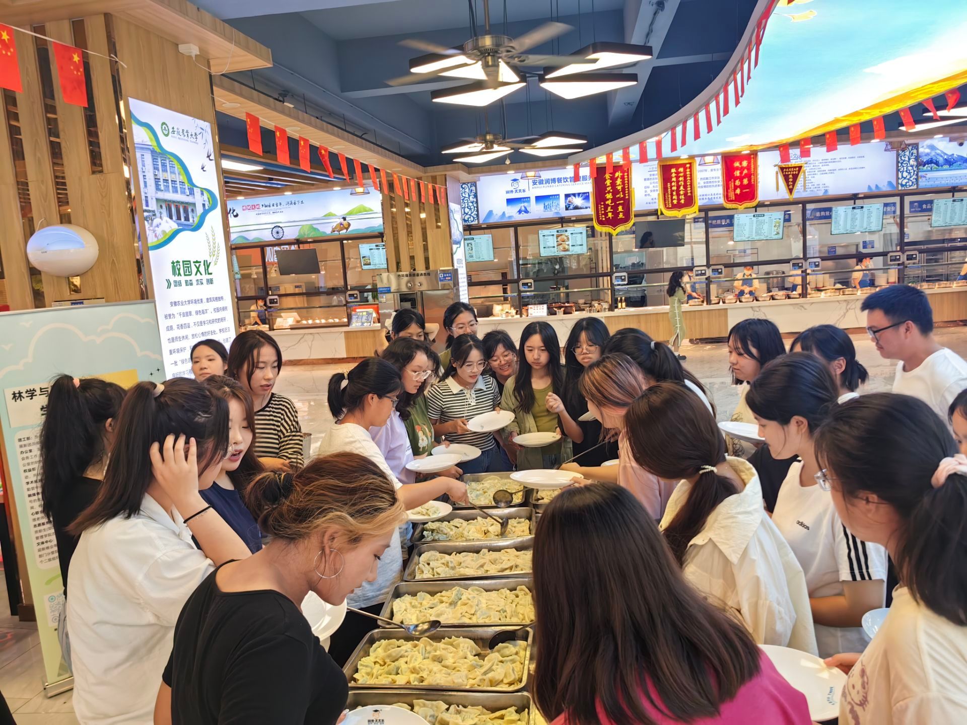 在这个充满诗意与温情的节日里,老师们与同学们一同参与包饺子活动。同学们积极参与,分工明确,齐心协力完成了饺子的制作。另外,师生一同演唱歌曲,营造出良好的节日氛围。