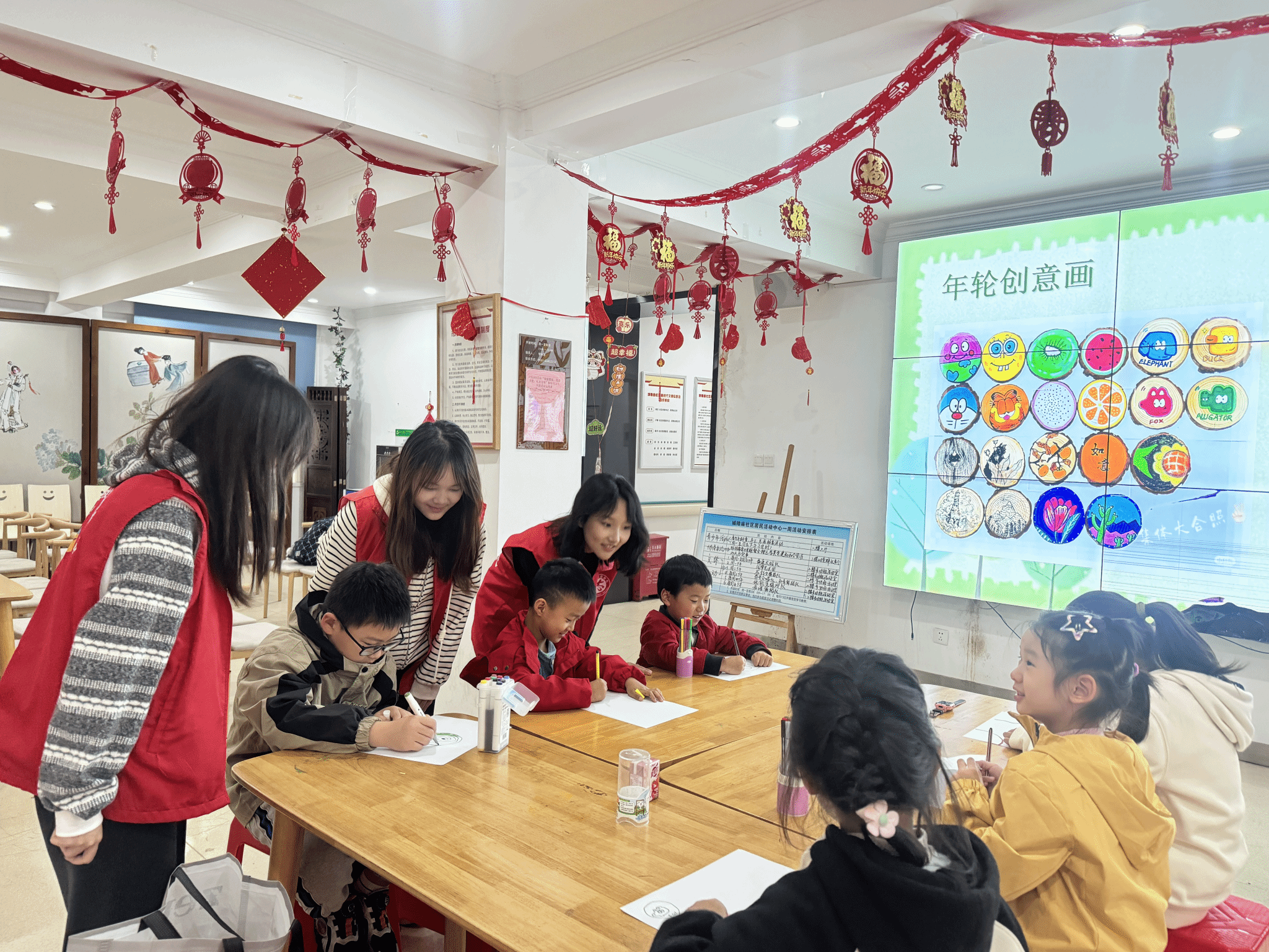 为深化理解、寓教于乐,讲堂特别设置互动环节。孩子们在志愿者的引导下积极思考、踊跃抢答,现场气氛十分热烈。随后的“创意年轮绘画”活动将氛围推向高潮——孩子们充分发挥想象力,用五彩画笔勾勒心中的年轮故事,在艺术创作中巩固所学知识。