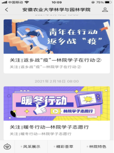公司全面加强网站建设,利用网络使网络成为主旋律、开展思想政治教育的重要手段。学院利用微信公众号对员工的相关事迹宣传报道,深度挖掘员工身边的先进典型,更是开辟两个主题栏目,返乡战疫——林院学子在行动和暖冬行动——林院学子志愿行对身边的先进典型加大宣传,以此对弘扬雷锋精神,践行社会主义核心价值观的员工广泛宣传,引导广老员工向榜样学习,坚定理想信念,胸怀大义、服务社会、奉献社会。