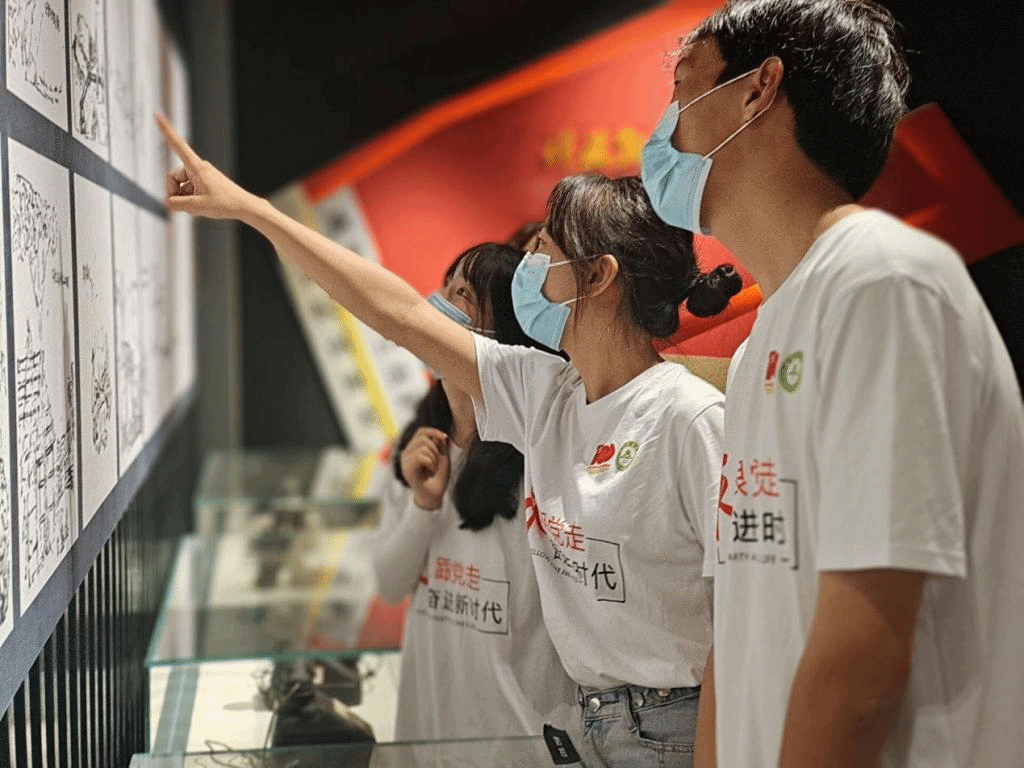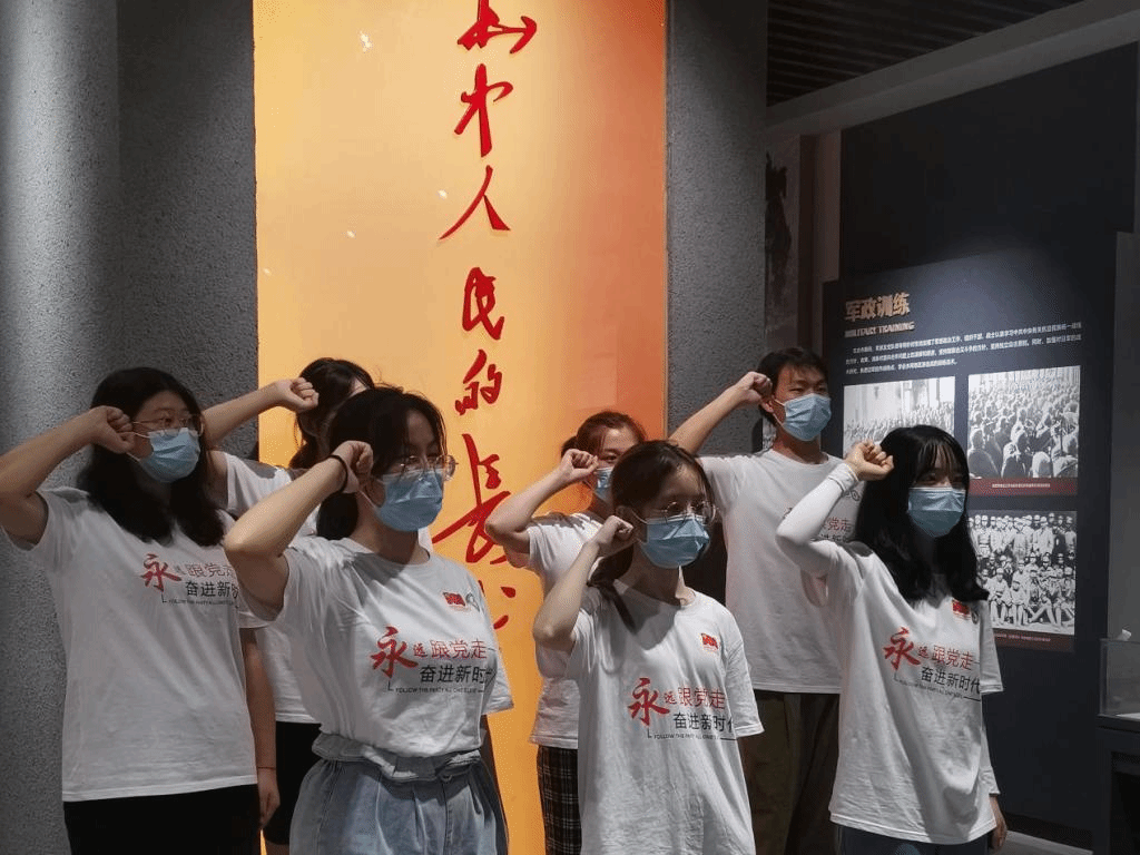 在纪念馆的最后一个展厅,“华中人民的长城”的纪念牌下,实践团成员静默宣誓,永远维护祖国、保护人民、追随共产党、不辱中华民族伟大复兴的历史使命。