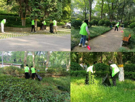 林院学子充分发挥不怕苦、不怕累的精神,积极维护校园环境卫生,拿着扫把、铲子等工具,认真清扫路面卫生、捡拾草丛杂物、拔除路边杂草以及枯枝落叶,为美化校园贡献出自己的青春力量。一件件绿色的小马甲也成了一道道靓丽的风景线。