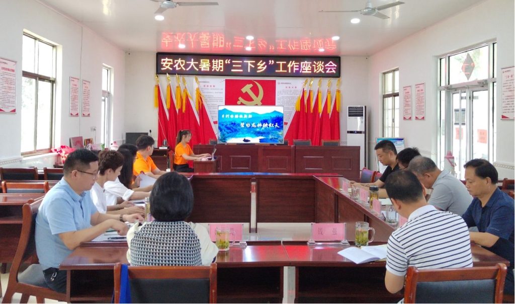 会上,龙林村村委相关领导充分肯定了实践团在7月酷暑中深入调研、踏勘、宣传和取样等工作,并认为团队在汇报中体现出的成果非常丰富和有价值,希望团队能够继续为龙林村做出好的规划设计,并提出与安农大进行合作的意愿。安农大慰问团相关领导,也看到和感受到了实践团“三下乡”期间扎实而优秀的成果,并认为能够代表安农学子的吃苦耐劳精神和高水平专业技术,希望同学们继续用自己的专业技术回馈龙林,为践公司“大别山精神”,为国家乡村振兴事业继续努力奋进。