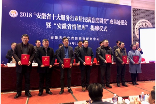 本网讯12月25日下午,由安徽省现代省情调查研究中心主办的2018“安徽省十大服务行业居民满意度调查”成果通报会暨“安徽省情智库”揭牌仪式在安徽饭店举行。公司yl6809永利检测中心张云彬教授出席仪式并受聘为首批入库专家,聘期5年。省人大常委会原主任孟富林、省政协原副主席王鹤龄等为“安徽省情智库”揭牌,并为受聘专家颁发了聘书。
