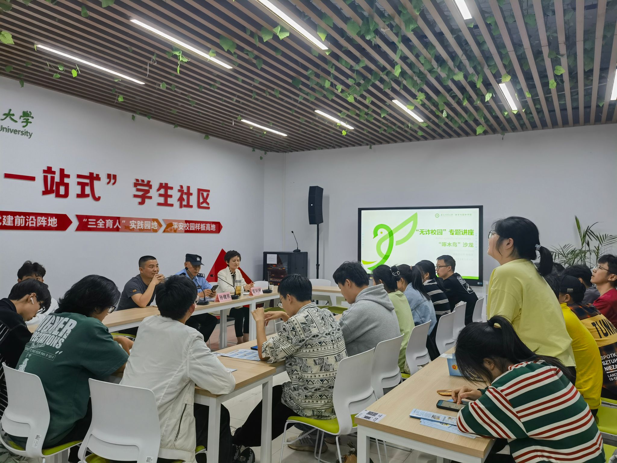 5月9日晚,学院特邀辖区琥珀派出所孙健民警官为作专题讲座。孙健民通过校园高频诈骗类型的具体案例,分析各类诈骗的惯用手法与套路,让员工在鲜活的案例中更直观了解各类诈骗,有效提高了员工防骗意识。孙警官强调各位同学务必安装国家防诈App,并对软件的使用及功能等方面进一步解读,同时希望各位同学把座谈会内容进行广泛宣传,力争通过大家共同的努力,让校园防诈“防护盾”牢不可破。
