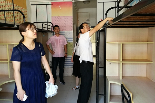 江正君一行逐个查看了新生宿舍的卫生状况和配套设施,对新生宿舍室内门窗、阳台的卫生安全情况和床铺、衣柜、空调以及水电等设施进行了细致的检查。在查看新生宿舍后,江正君指出,员工住宿是大事,安居方可乐学,没有安定舒适的“根据地”,员工很难集中注意力。尤其是刚离开父母、家乡的大一新生,宿舍是他们对学校的第一印象,因此宿舍环境至关重要。