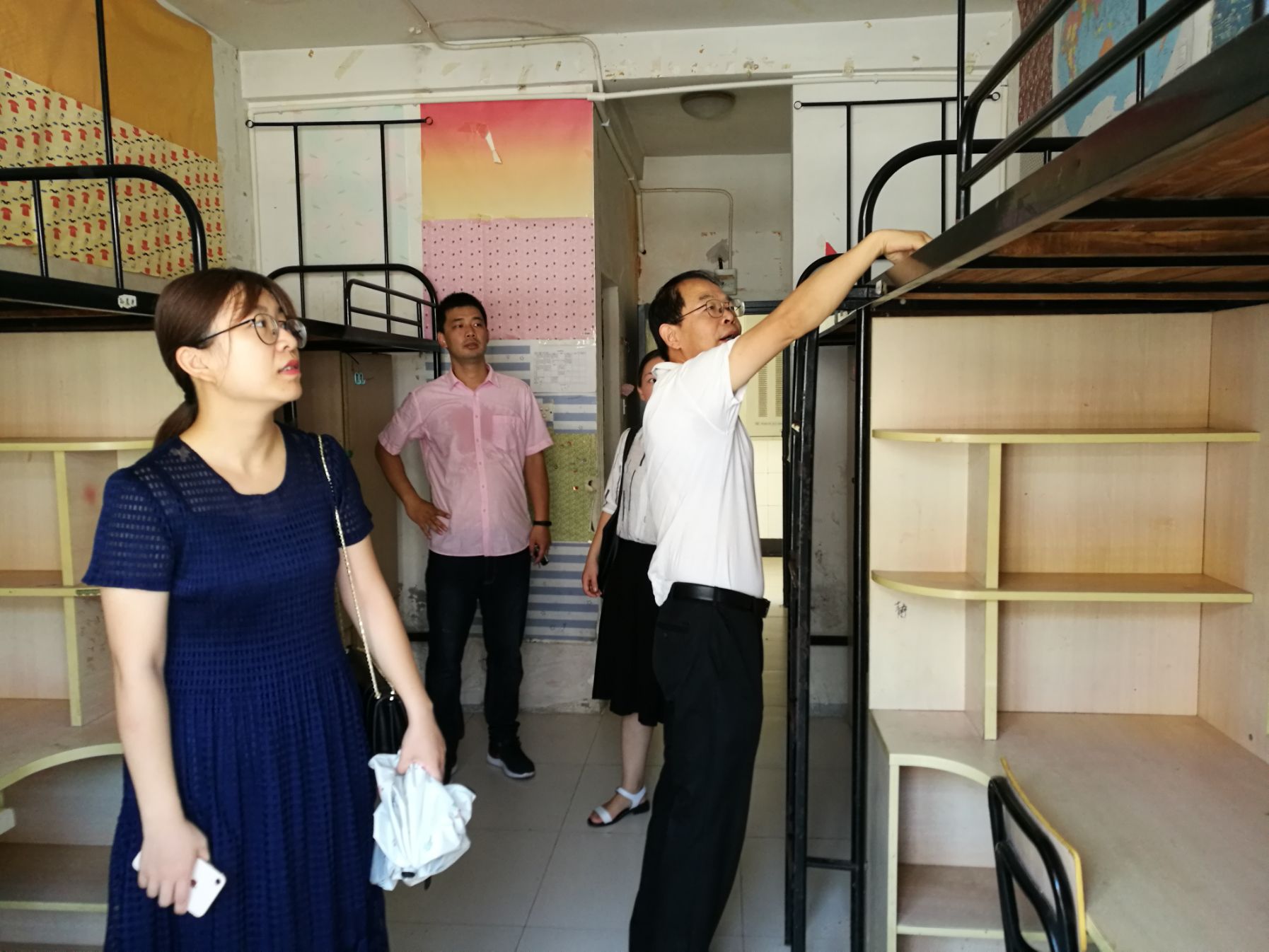 为给新生一个温馨的住宿环境,学院领导和辅导员班主任前往学院新生宿舍具体查看员工住宿情况,并及时做好宿舍信息的反馈。