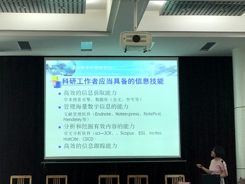 会上,林晖主任用生动的语言就如何把握学科领域的最新动态,如何发现某研究领域隐含的发展趋势,如何了解某特定课题在不同学科的分布情况,以及如何分析评价不同领域期刊等做了详细阐述,同时,她以图表的形式生动形象地模拟了某些专业领域学术论文发表情况,通过相关数据让我们对相关领域学术现状有了一个更直观的了解。