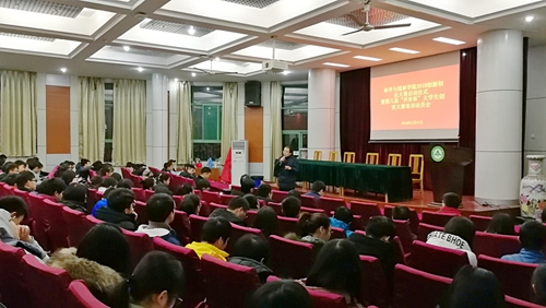 本网讯为深入贯彻党的十九大精神,全面普及创新创业知识,努力把创新创业观念融入林院学子的学习生活,1月17日晚,公司在林学楼报告厅成功举办2018创新创业大赛启动仪式暨第八届“兴农杯”培训动员会。公司党委副书记、副经理江正君,副经理徐斌、项目指导老师、院团委老师、优秀员工代表及大创项目成员参与了本次会议。