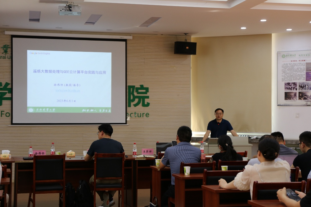 王懿祥教授作了《林业碳汇项目开发与GEP核算转化》报告,详细介绍了林业碳汇的概念、林业碳汇项目开发的流程和方法、GEP核算转化的方式及具体案例;王佳教授作了《森林碳汇计量与监测研究进展》报告,详细介绍了森林碳汇监测发展历程、森林碳汇的主要计量方法、不同尺度碳汇研究的热点和难点;徐伟恒教授作了《遥感大数据处理与GEE云计算平台实践与应用》报告,详细介绍了GEE的由来 、GEE的功能、当前使用GEE开展研究的方向、研究生利用GEE开展课题研究的注意事项等内容。