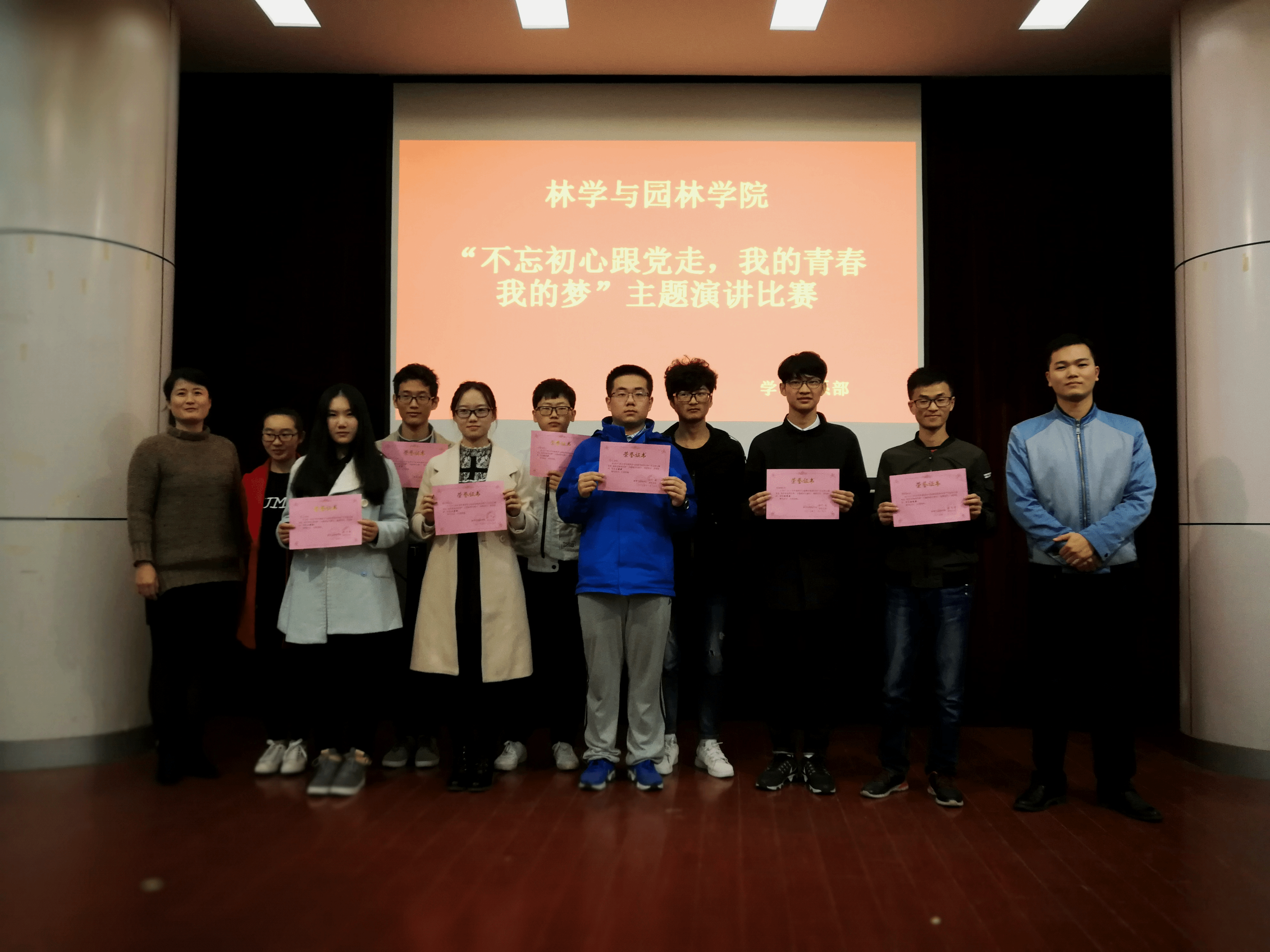 本次演讲比赛以学习贯彻党的十九大精神为主线,围绕“不忘初心跟党走,我的青春我的梦”展开。参赛选手来自不同年级专业,他们结合个人经历,以当代老员工的历史使命为立足点,阐述自己的青春梦想,将自己对未来的设想与期望用铿锵的言语生动的勾勒出来,彰显出林院学子昂扬自信,积极向上的精神状态。本次比赛共评出一等奖1名,二等奖2名,三等奖3名,优秀奖若干。经过激烈角逐,最终,来自16级中外林学专业的钱怡获得此次比赛的一等奖。