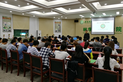 自8月21日起,2014级木材专业综合实习采取集中及分散驻厂的形式开展了为期三周的专业综合实习。汇报会上,分散驻厂于志邦家居、客来福家居、蓝天家具、池州东盾等八个企业的实习小组逐一进行汇报,以详实的内容、精彩的图片及视频资料等展示实习成果,总结实习中的经验教训,分享实习感悟。各个小组在驻厂期间都洒下辛勤的汗水,热情饱满地投入实习工作,提升了同学的专业技能、锻炼了意志,收获良多。汇报结束后指导老师对各小组的汇报内容依据评分细则评定实习成绩,并给予了总体的点评指导。