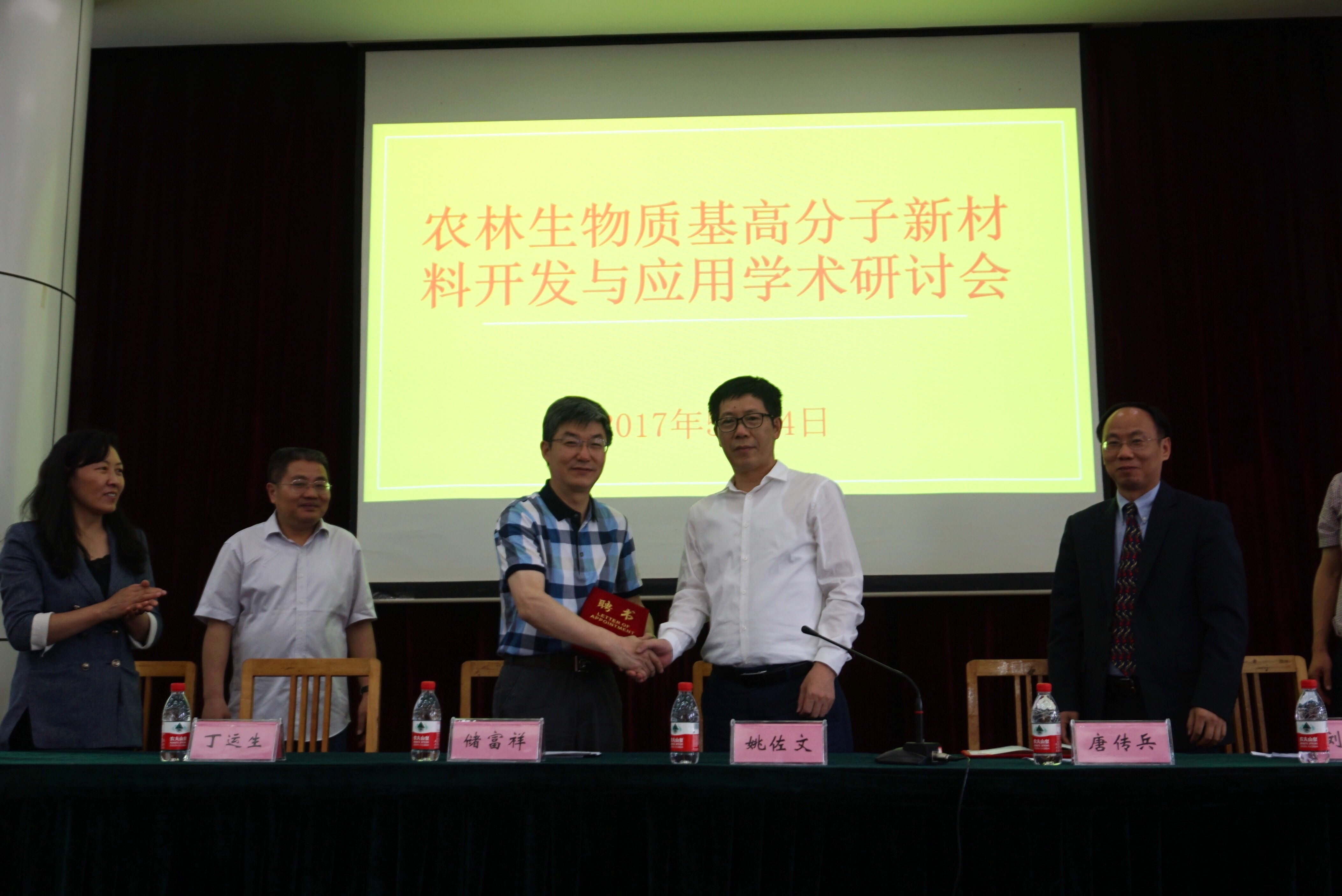 会议开幕式上,姚佐文副董事长为储富祥和唐传兵两位教授颁发了名誉教授聘书。(周亮 通讯员:陶伟)