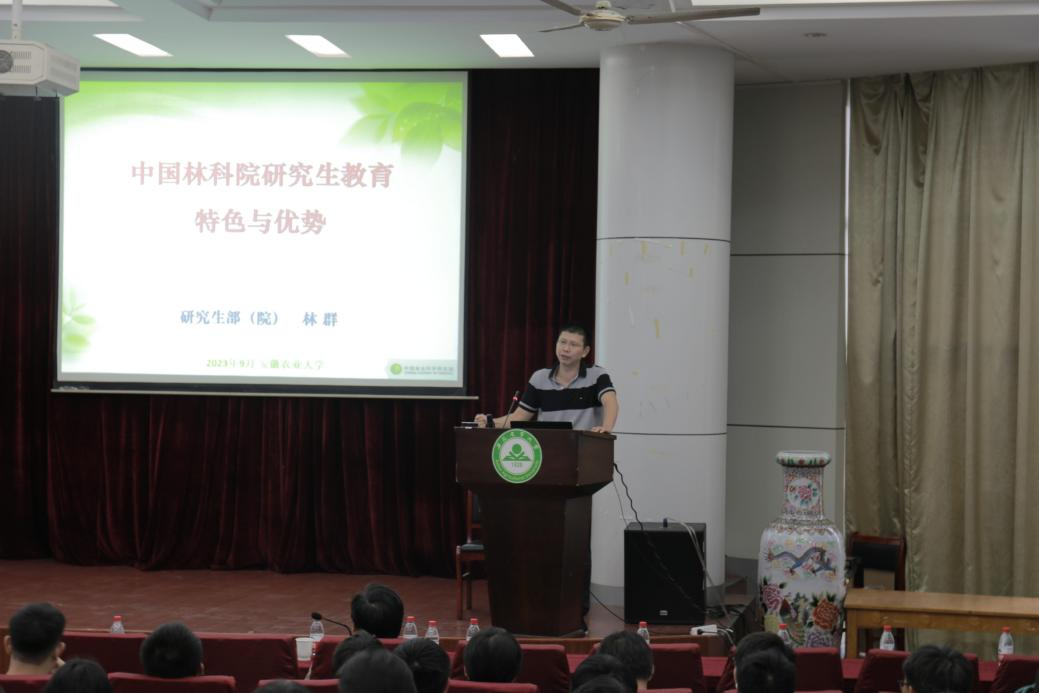 林群经理围绕中国林业科学研究院研究生教育的特色和优势,向员工详细介绍了中国林业科学研究院的组成架构、科研团队与研究方向、招生情况等,员工反响热烈,关于未来升学方向与报考事宜等问题与林经理展开了深入交流。