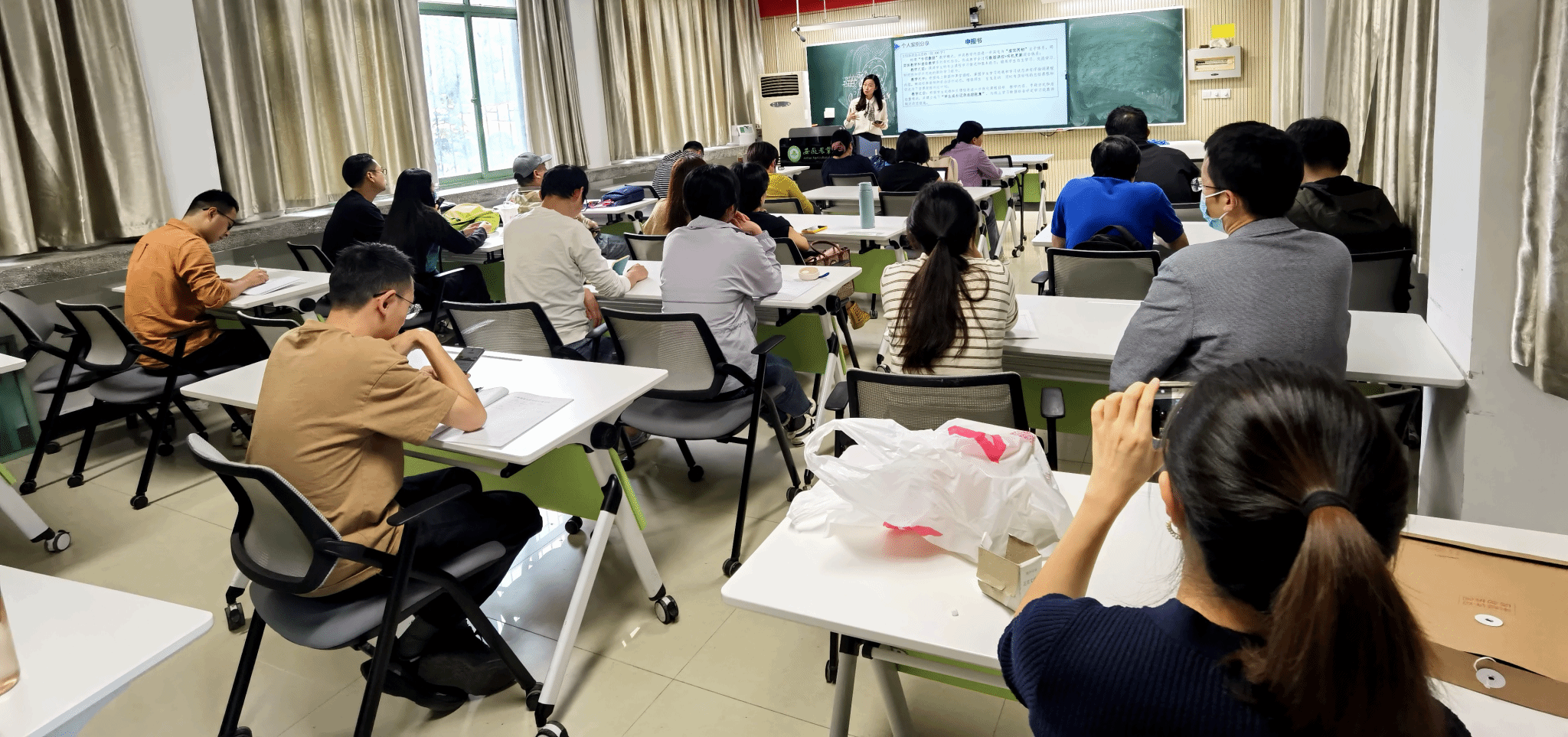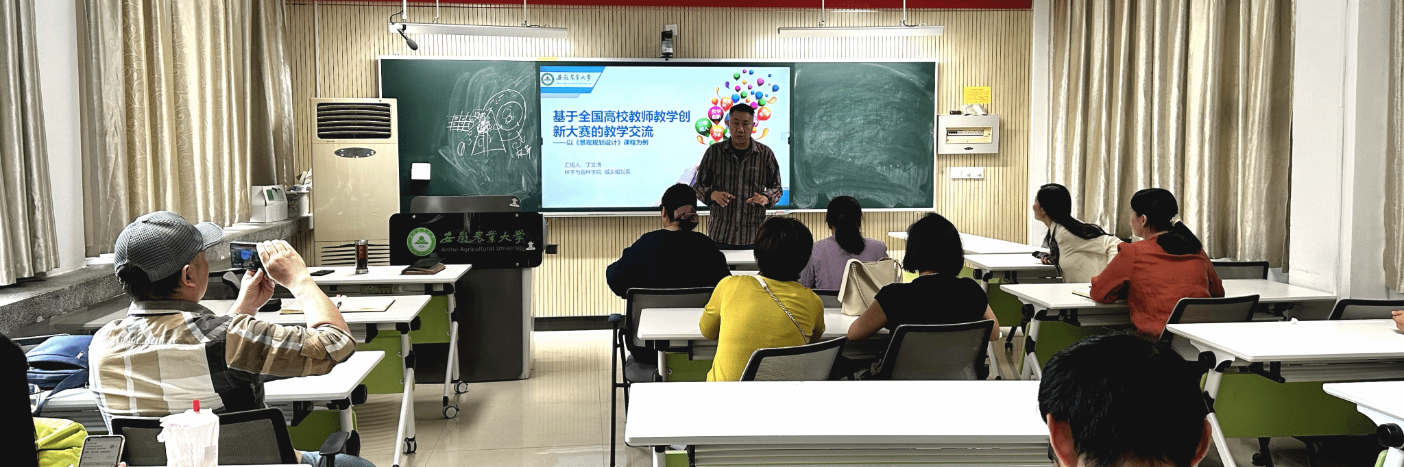 城乡规划系教学副主任丁文清老师以《景观规划设计》课程为例,做了汇报和经验交流,强调竞赛在大政策指引、评分标准变化和材料要求细节等方面的关键点,同时结合自己竞赛获奖的案例,细致介绍和分析了竞赛材料编写和视频录制等方面的注意事项和个人经验,并且现场与现场教师进行了竞赛、教学等方面的交流。