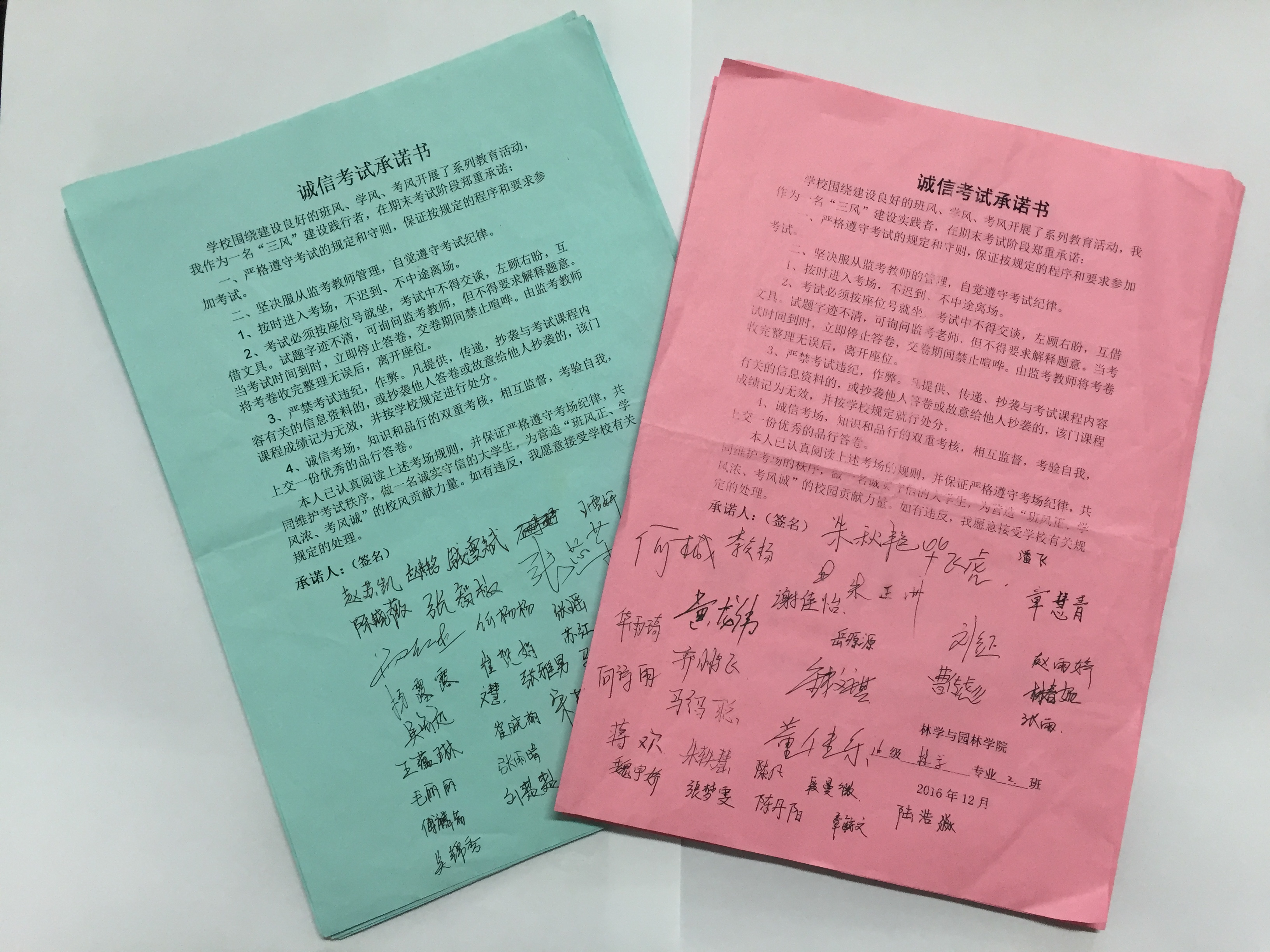 一是在考试前与考生签订《诚信考试承诺书》。为确保期末考试的顺利进行,学院让每个同学以专业为单位签订《诚信考试承诺书》,积极教育引导,引导考生诚信考试。二是学院每位班主任辅导员在检查员工宿舍时,与员工面对面进行宣讲,让“文明考风 诚信考试”入脑入心。三是学院专门召开班主任、辅导员会议要求,期末考试前,各班级要召开一次“文明考风 诚信考试”主题教育活动,对员工进行严肃考风考纪教育,告诫同学要知法守法,自觉遵守考试纪律。四是员工党员、员工干部考试“亮身份”。为发挥员工党员、员工干部表率作用,树立文明考风、诚信考试的榜样,学院参加考试的员工党员、员工干部台面都摆上了一个“员工党员干部”的身份牌。员工党员、员工干部在考场亮出自己的党员干部身份,接受广大师生监督,塑造员工党员干部良好形象。