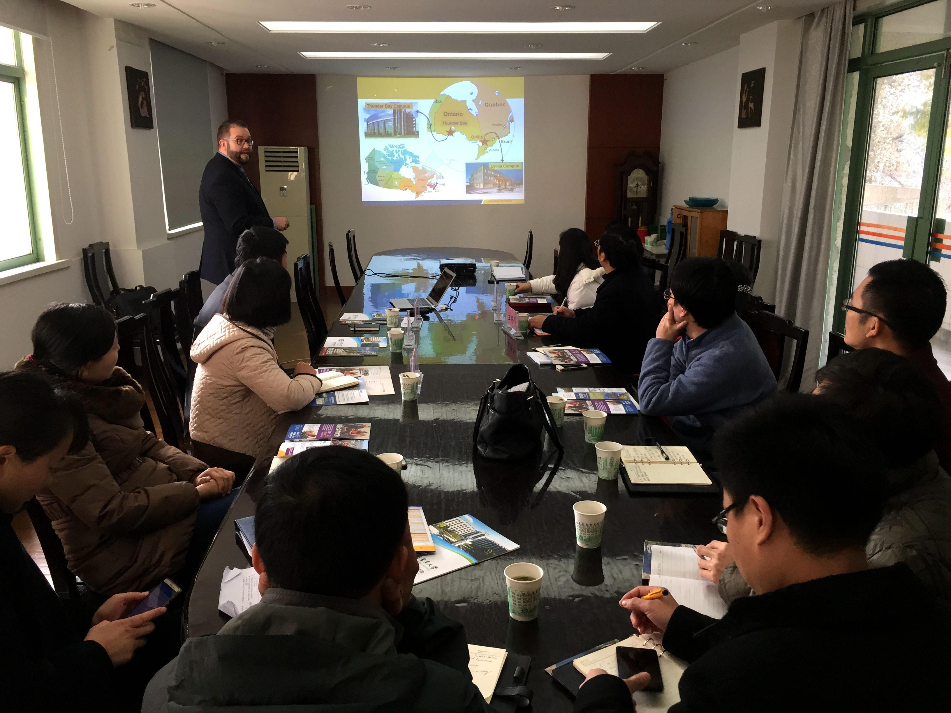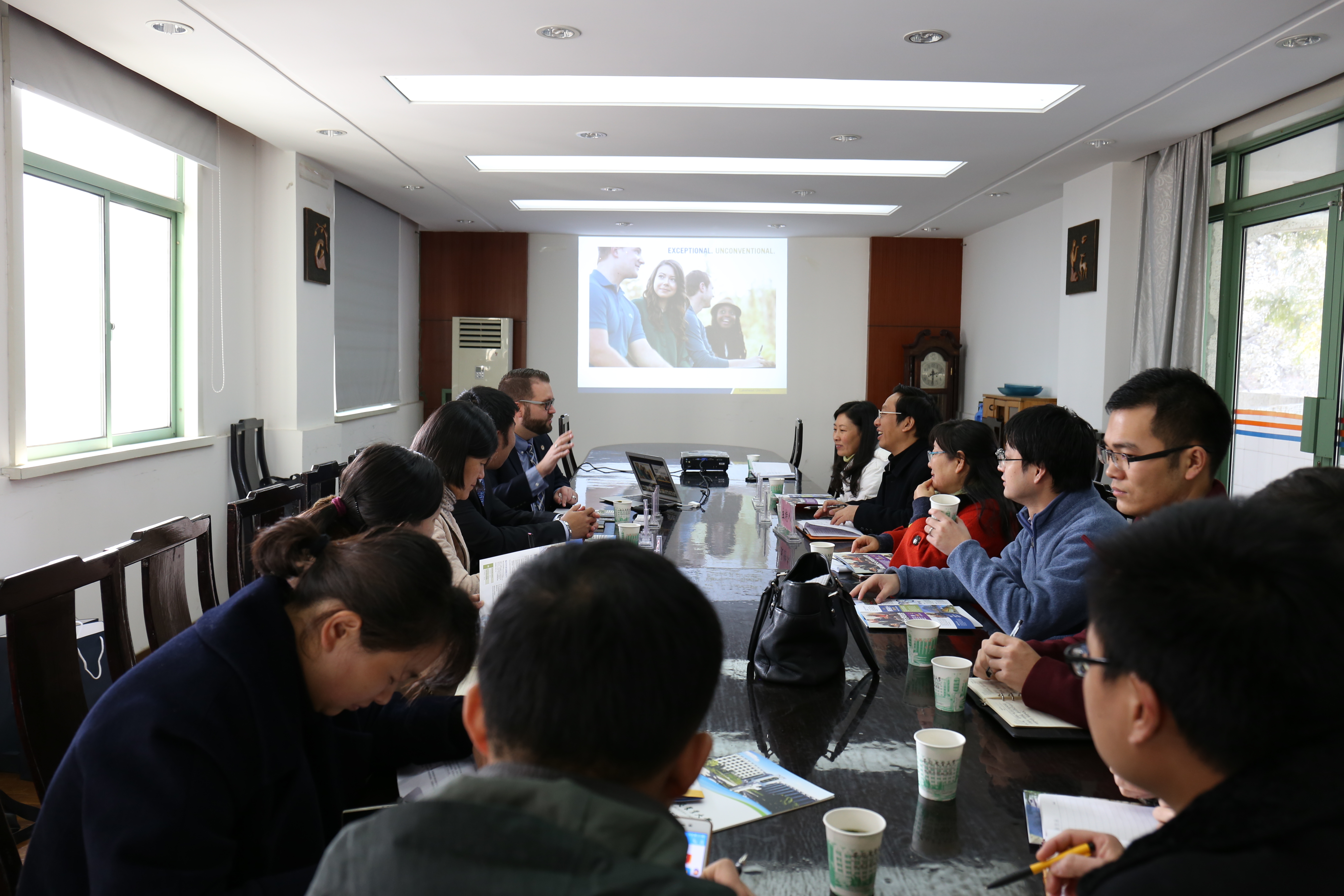 湖首大学代表团一行首先与国际交流合作处负责人就如何扩大两校间交流,提升现有项目的吸引力进行了专题会谈。双方就可以合作的项目类型、学科进行了探讨,并就湖首大学设立奖学金支持2+2项目事宜进行了初步磋商。