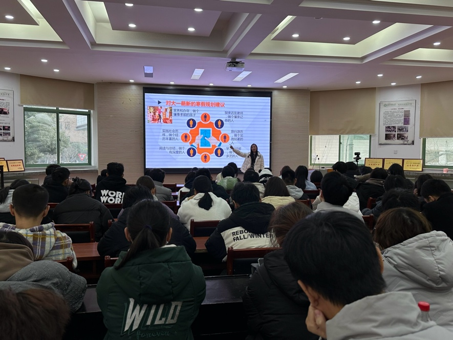 本网讯 为了帮助同学更好地做好寒假规划,利用好假期充电赋能。2024年1月10日下午,2023级城乡规划专业在学院二楼报告厅召开了“畅谈寒假 展望未来”主题教育班会,班主任丁文清、辅导员王凯旋以及全体同学参加,会议由辅导员主持。
