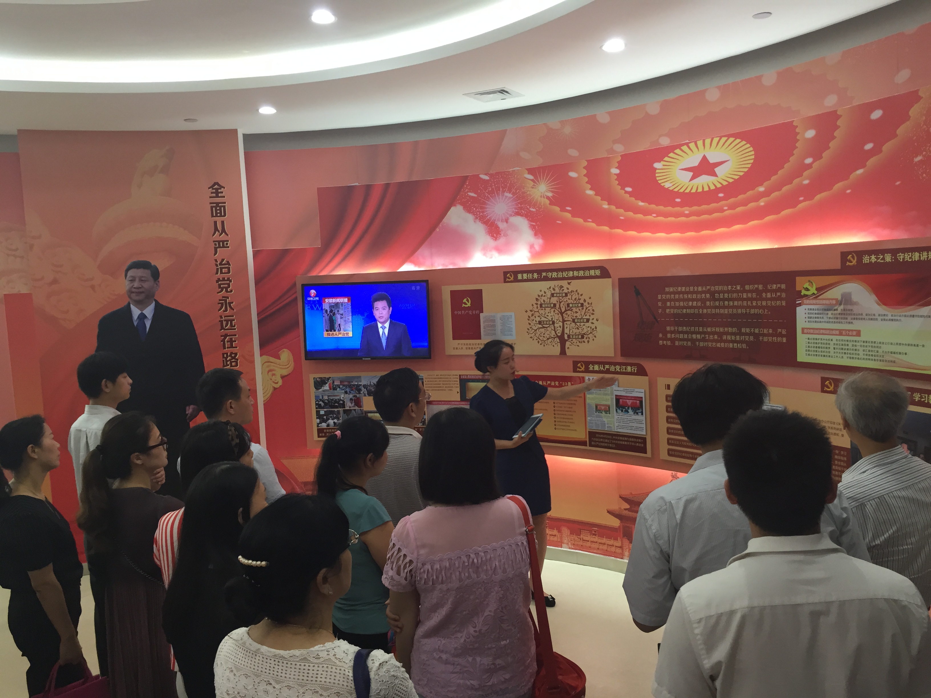 在安徽省廉政教育基地,讲解员详细介绍了从中国共产党建党之初的反腐倡廉工作到近年以来安徽省内贪污腐败反面典型案例,讲解了人生需要算好的“政治账”、“经济账”、“名誉账”、“家庭账”、“亲情账”、“自由账”、“健康帐”等七笔账。党员同志们通过文字、图片、案例、模拟监狱、实物展示和声光电多媒体演示等各种方式了解了党的反腐倡廉工作,特别是看到一些身边曾经熟悉的党员干部如今已身陷牢狱,全体参观人员思想上备受震撼,深受教育,进一步认识到腐败对国家、对人民、对家庭、对自身的危害。