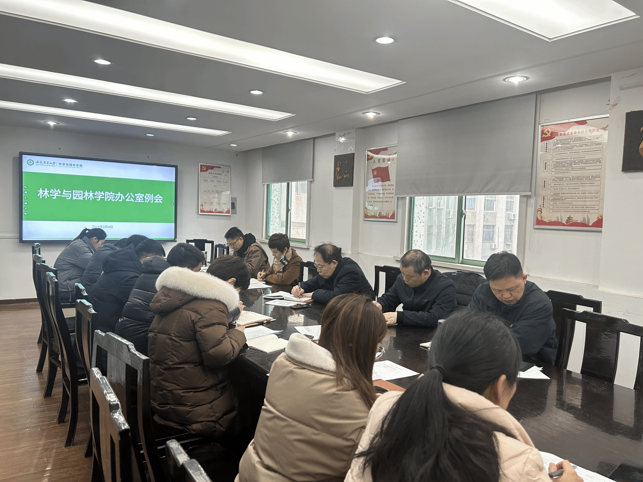 本网讯 3月4日上午,学院在林学楼二楼会议召开办公室工作例会,落实工作、交流研讨,学院领导班子和办公室全体成员参加。