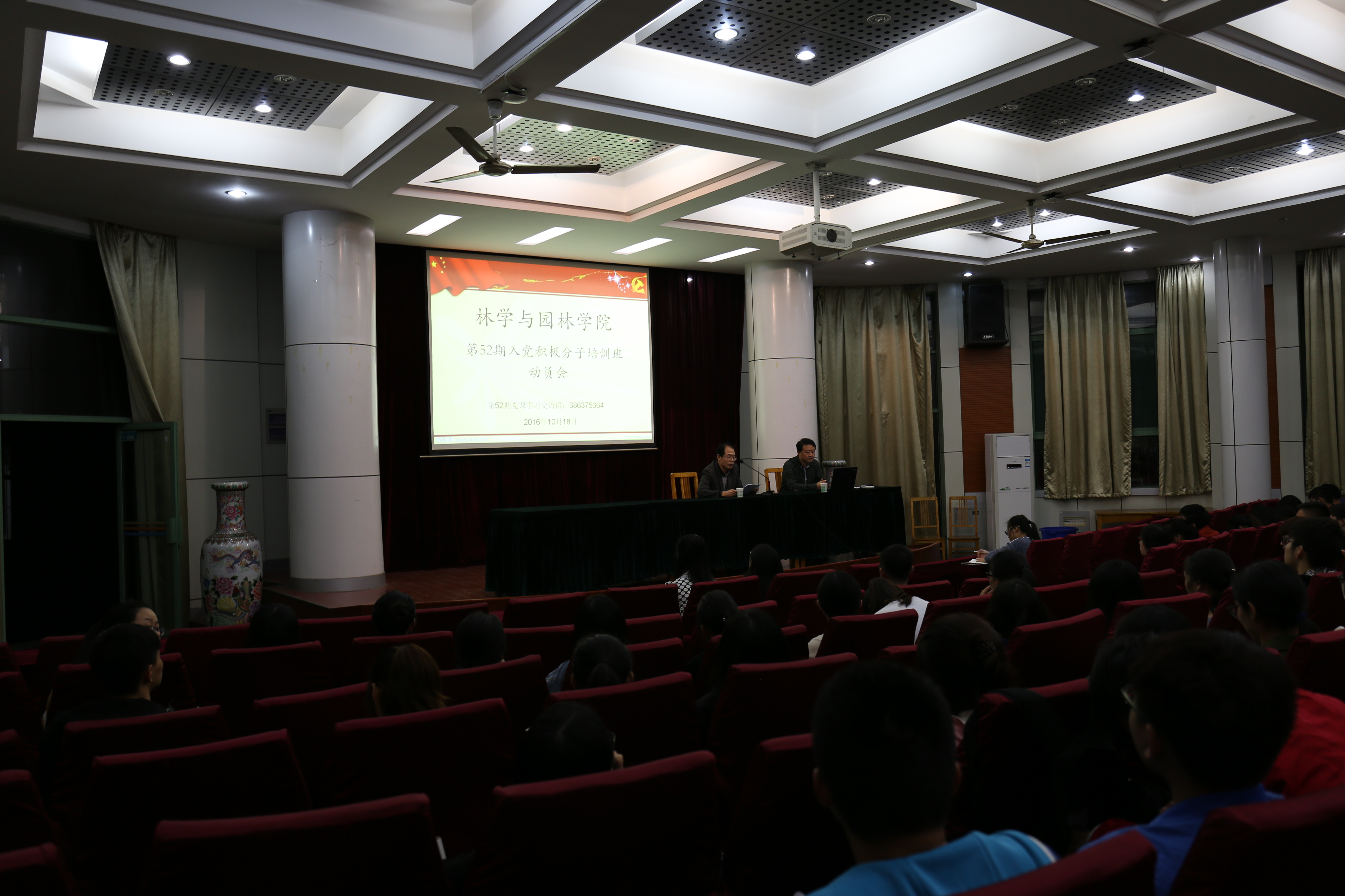 本网讯 10月18日晚上,yl6809永利检测中心分党校第52期入党积极分子培训班开班动员会在林学楼报告厅隆重举行。马克思主义学院经理黄洪雷教授,分党校班主任、第52期全体入党积极分子参加了本次开班动员会。动员会由党委副书记兼副经理江正君主持。