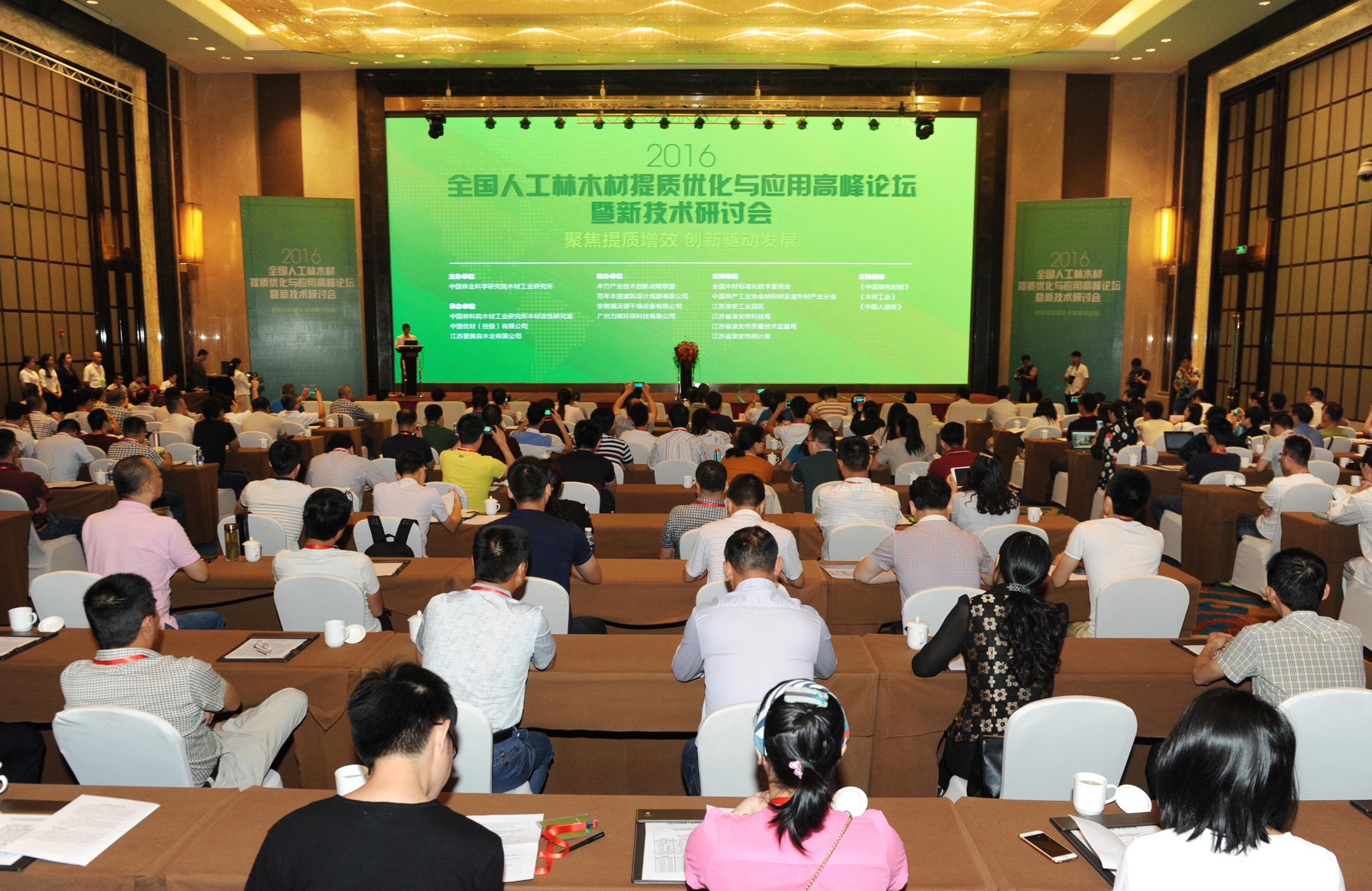 本届高峰论坛由江苏淮安工业园区支持,中国林业科学研究院木材工业研究所主办,中国优材(控股)有限公司和江苏爱美森木业有限公司承办,以“聚焦提质增效,创新驱动发展”为主题,探讨木材产业可持续发展途径,拉长工业园区木业产业链,做大做强园区高端木制品产业。