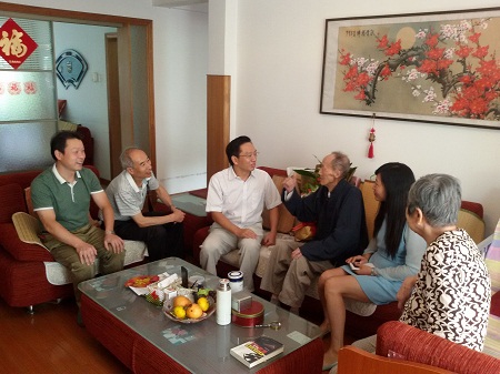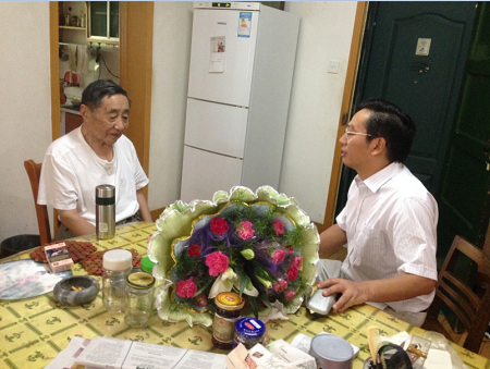 白发积霜织日月,粉笔无言写春秋。老教师们为学院的教育事业奉献了青春和汗水,为学院的发展建设做出了无私的奉献。在第31个教师节来临之际,9月10日上午,公司党委书记唐红萍、经理刘盛全和江正君副书记、徐斌副经理、徐小牛副经理等一行相继走进四位年近100岁退休高龄老教师家中,为他们送上节日的祝福和慰问,带去全院教职工对他们的深切挂念和美好祝愿。