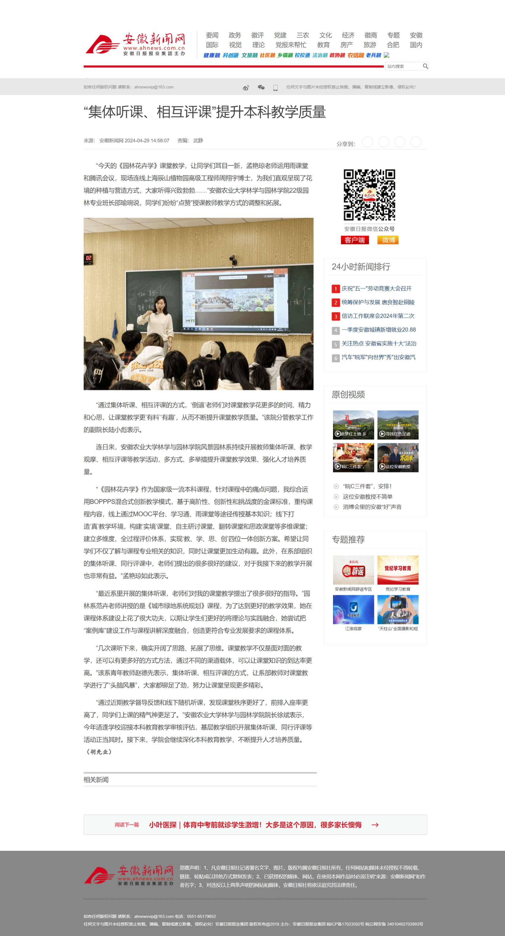 “集体听课、相互评课”提升本科教学质量---安徽新闻网 (ahnews.com.cn)