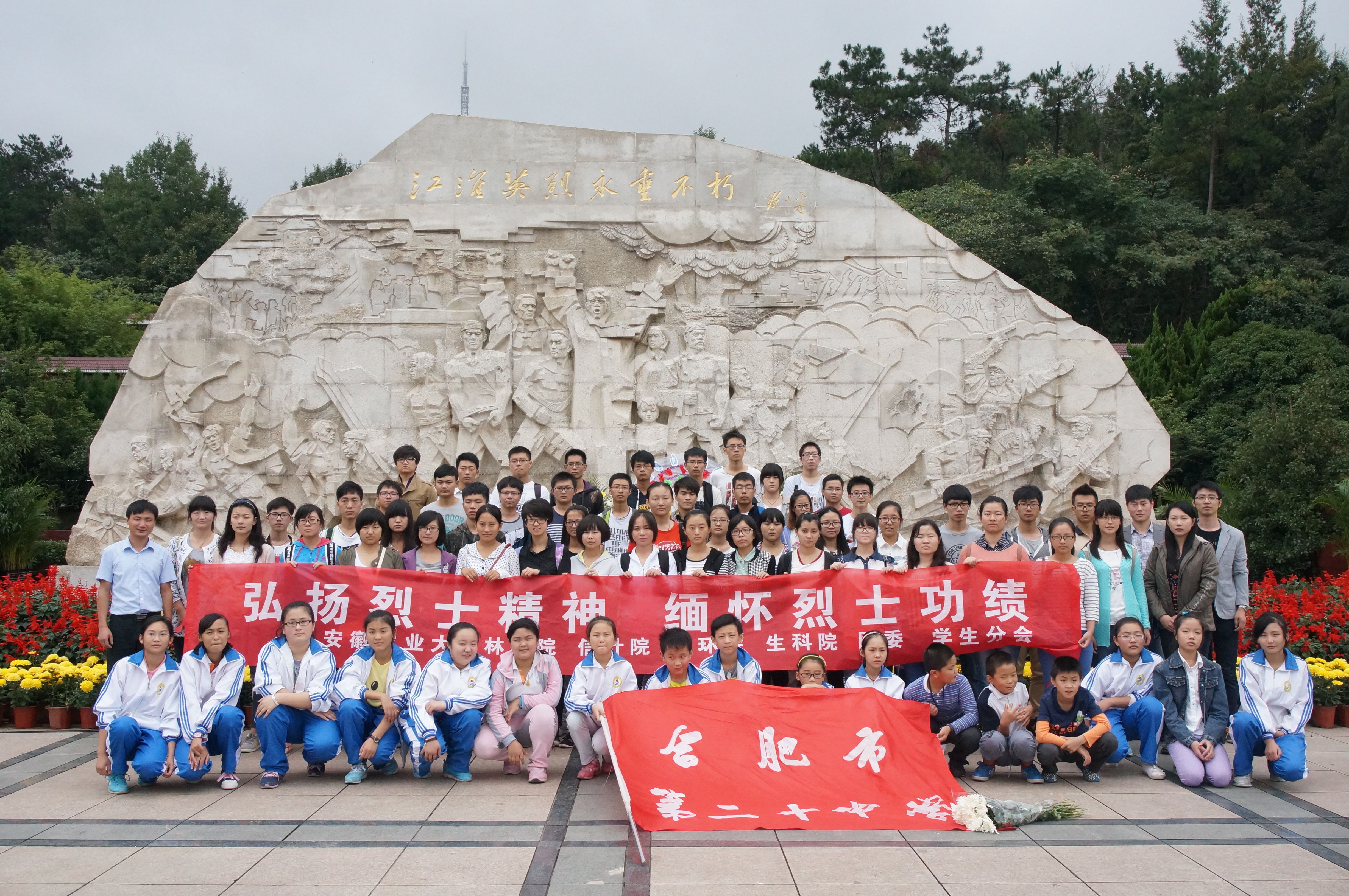 本网讯 在首个烈士纪念日来临之际,9月29日上午,yl6809永利检测中心yl6809永利检测中心、信息与计算机学院、资源与环境学院、生命科学学院四院团委及合肥市第二十中学团委联合开展扫墓仪式。我们怀着对革命烈士的无比崇敬之情来到蜀山烈士陵园烈士纪念碑面前,瞻仰和缅怀为争取民族独立和人民自由幸福,为了国家繁荣富强牺牲的革命烈士。回忆往昔