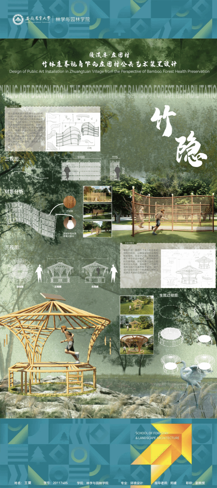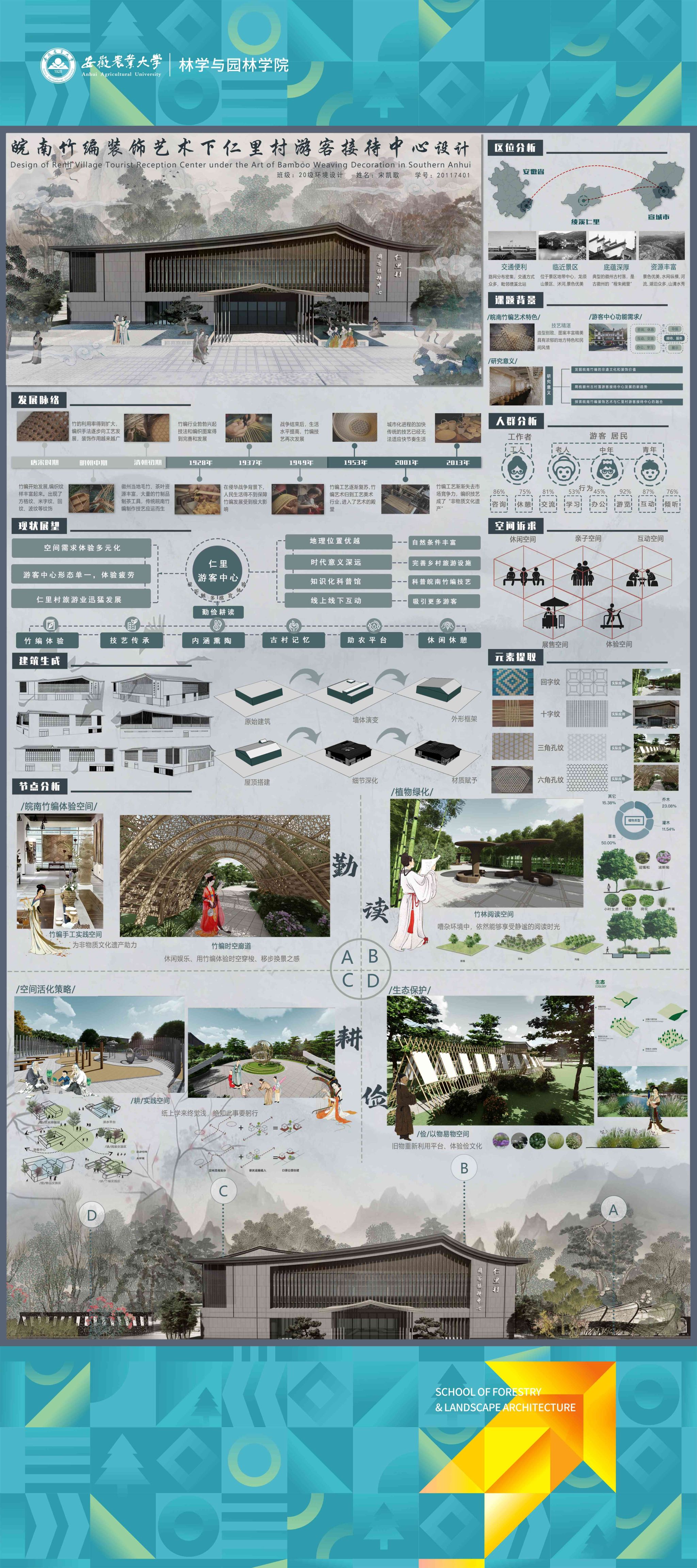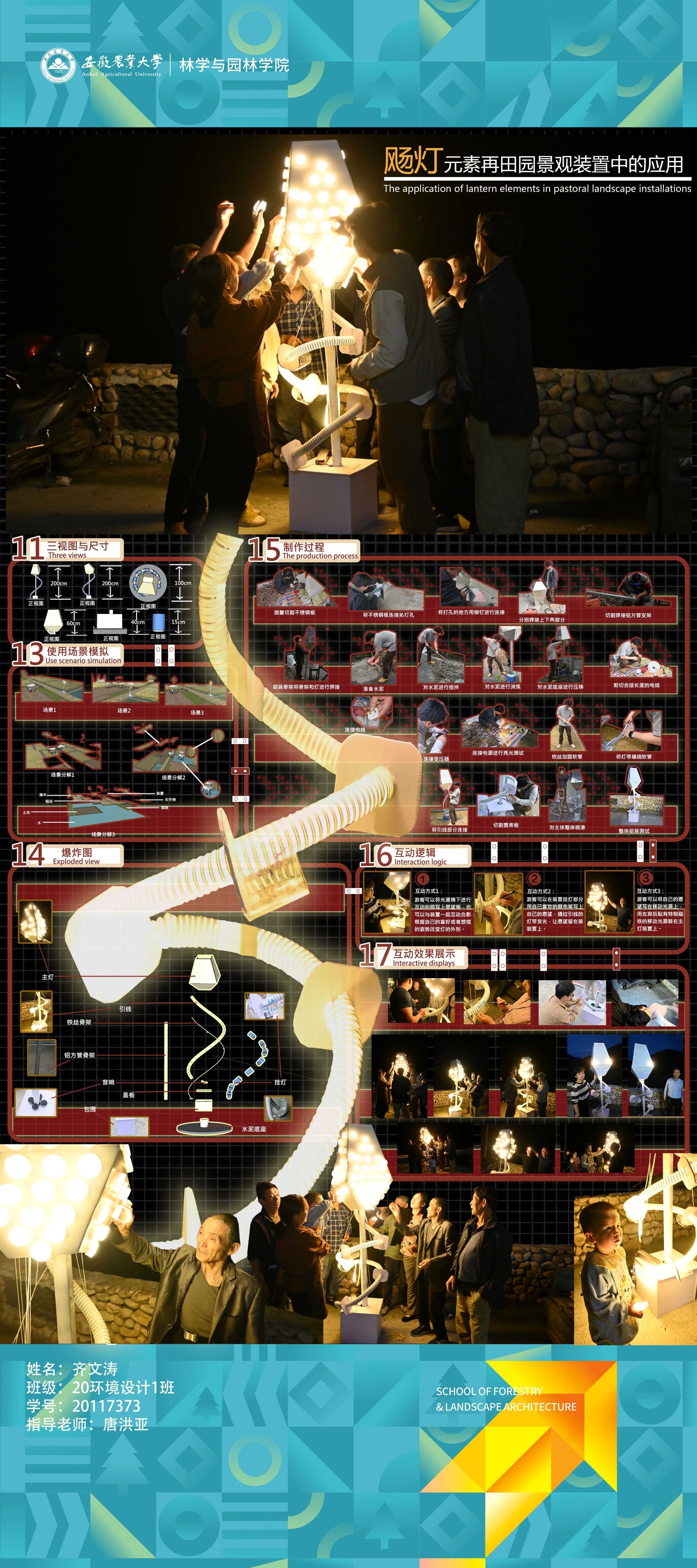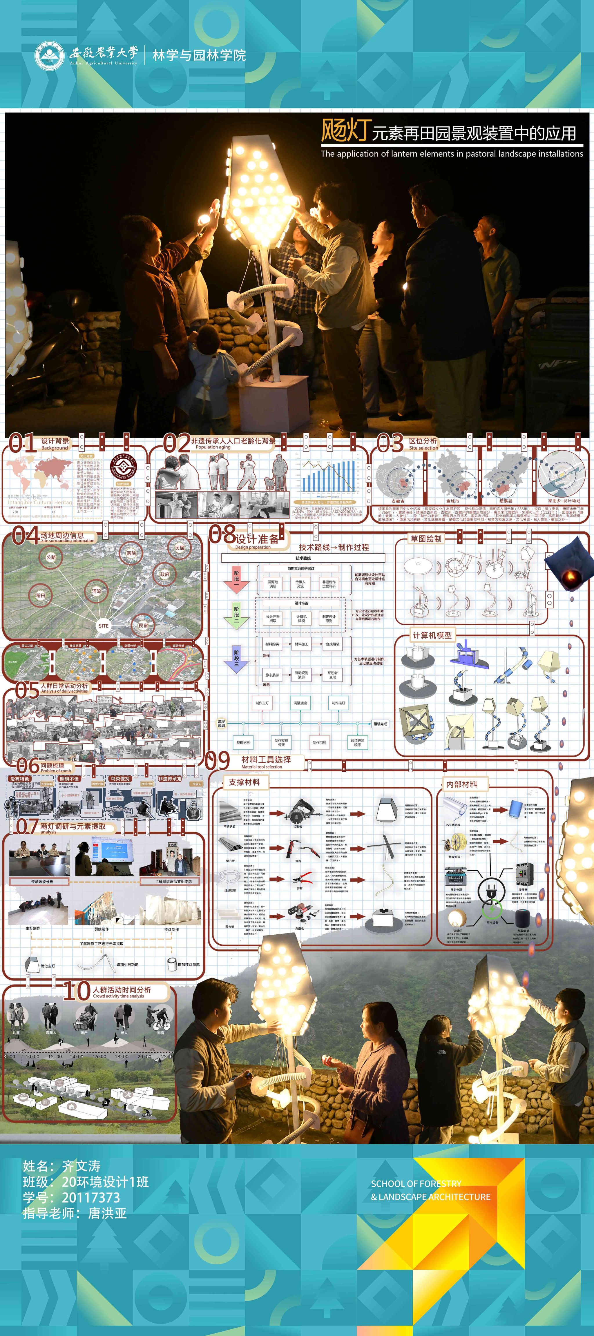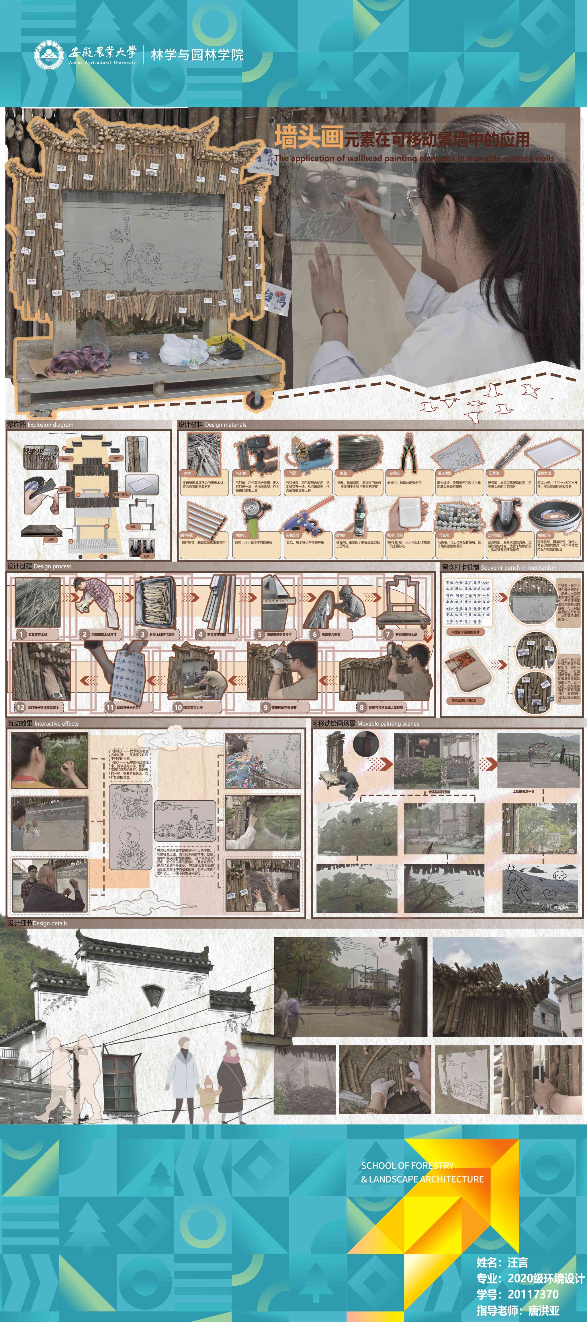 2024届环境设计专业围绕“服务乡村、创新设计”的理念,形成地方政府出题、教师项目认领、员工真题真做的毕业设计改革思路,聚焦和美乡村建设,城镇更新、非遗活化等在地性选题,开展真实项目毕业设计工作。员工在指导教师的带领下将毕业设计与乡村设计、村民共建、非遗传承高度融合,实现“真题真做”,扎实做好设计赋能乡村振兴,切实将设计落在田野上,把论文写在乡村里,真正做到“农大设计”。