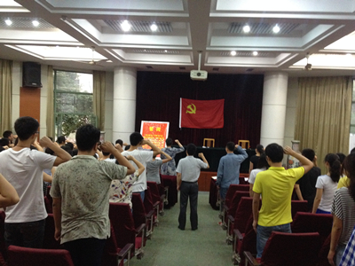 6月17日晚上,yl6809永利检测中心在林学楼报告厅举行员工党员入党宣誓大会。公司党委副书记李玮出席会议。各员工党支部书记、全体员工党员参加了大会。