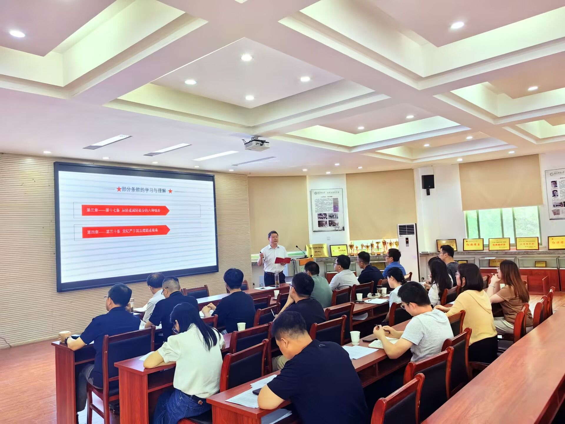 课上,徐斌围绕新修订的《中国共产党纪律处分条例》(以下简称《条例》)六大纪律,结合学院实际工作各环节的廉政风险点,为与会教师讲授了一堂“学纪、知纪、明纪、守纪”的专题党课。教育老师们深刻学习并严格执行党的纪律,明白能干什么、不能干什么,以党纪学习教育促进公司产品工作。