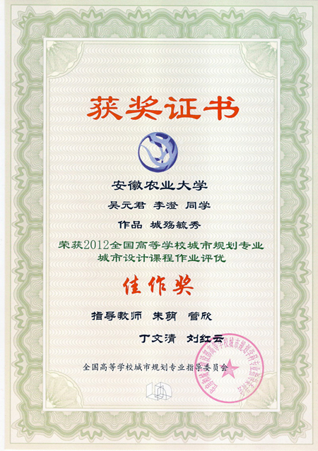 本网讯:9月20日,公司城市规划系副主任管欣带队相关老师参加了由全国高等学校城市规划专业指导委员会在武汉大学召开的2012年年会,年会以“人文规划,创意转型”为主题,开展了新时期城乡规划学教育改革讨论与交流。公司城规学子积极参与年会举办的全国城规员工城市设计作业竞赛,最终由朱萌、管欣、丁文清和刘红云老师指导的2008级城市规划专业吴元君、李澄同学的城市设计作品《城殇毓秀》荣获佳作奖。