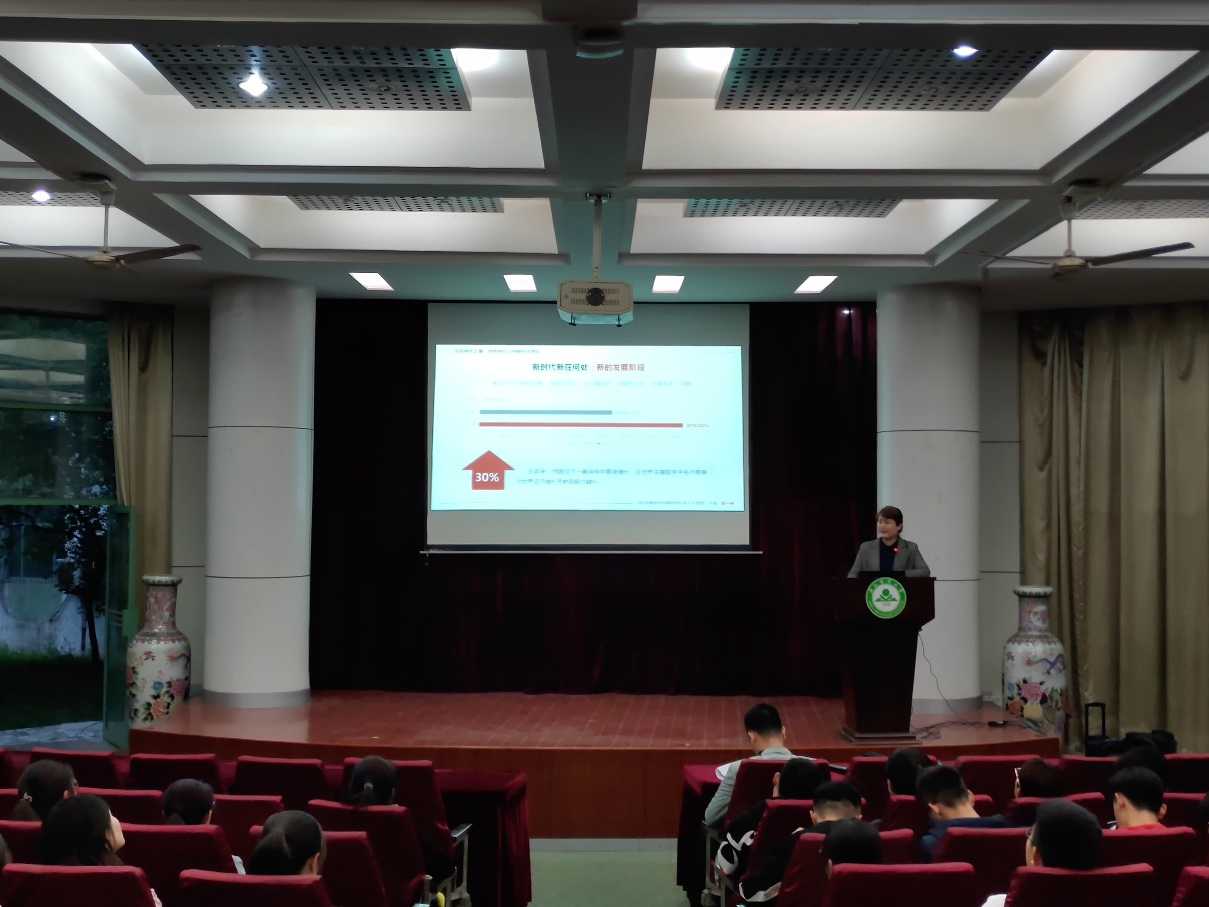 首先,杜亚娜老师简要讲述了习近平新时代中国特色社会主义思想。中国特色社会主义进入新时代,科学社会主义迈向新阶段,当今世界经历新变局,我党面临着执政新考验。因此,她鼓励同学们不忘初心、牢记使命,高举中国特色社会主义伟大旗帜,坚持走中国特色社会主义道路。