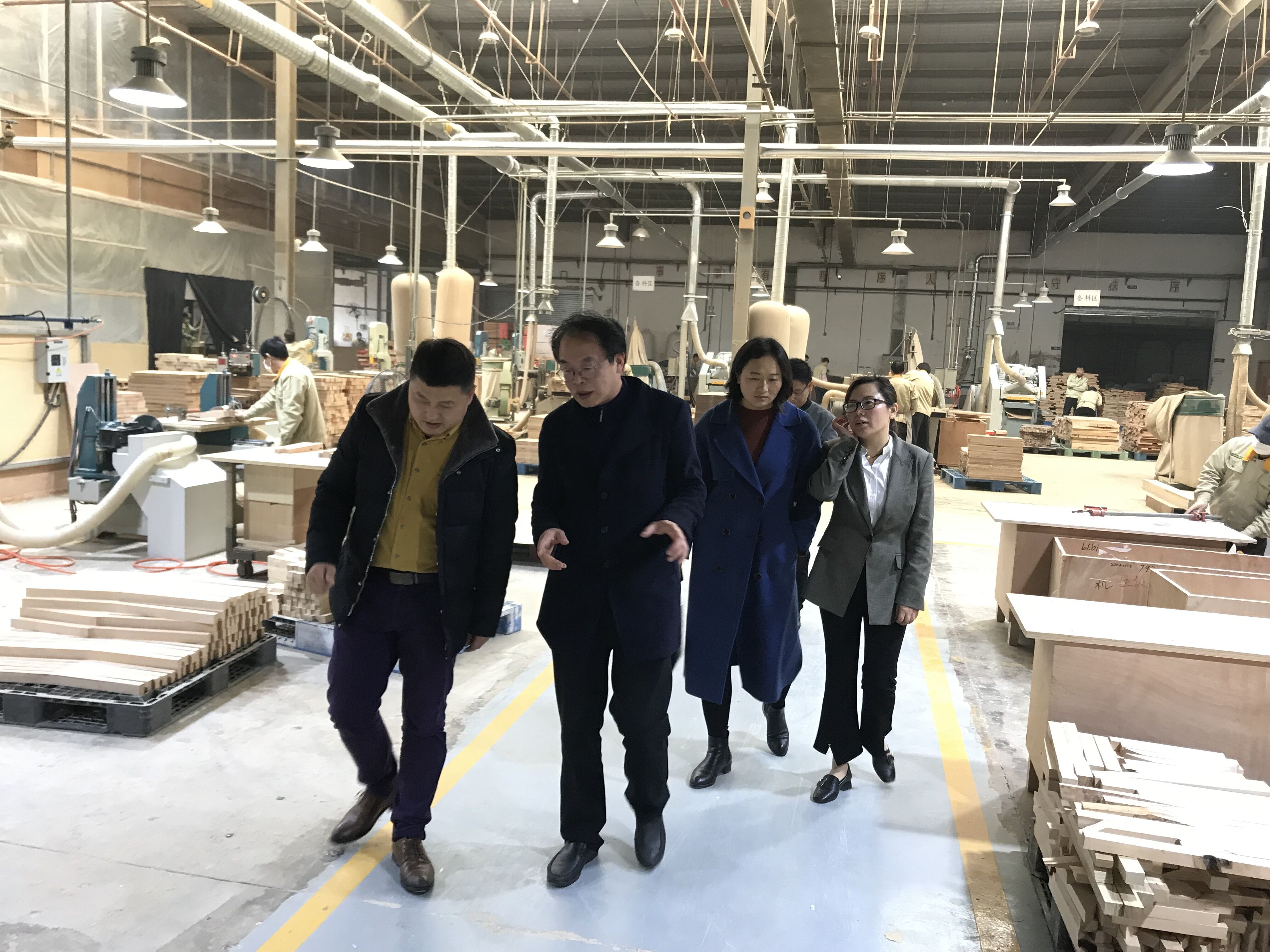 江正君一行先后走访了江丰家具上海总部、昆山生产线。了解该公司创建于1950年,是一家台资企业,拥有上海、昆山两大生产基地,13座厂房,8条专业化生产车间 ,总占地面积达88000m²。公司主要设计生产酒店家具、私家家居,做海外市场和国内高端酒店市场。通过走访调研和交流发现该公司技术人员、管理团队经验丰富,产品种类繁多,生产设备先进,生产车间干净整洁,生活区配套齐全。