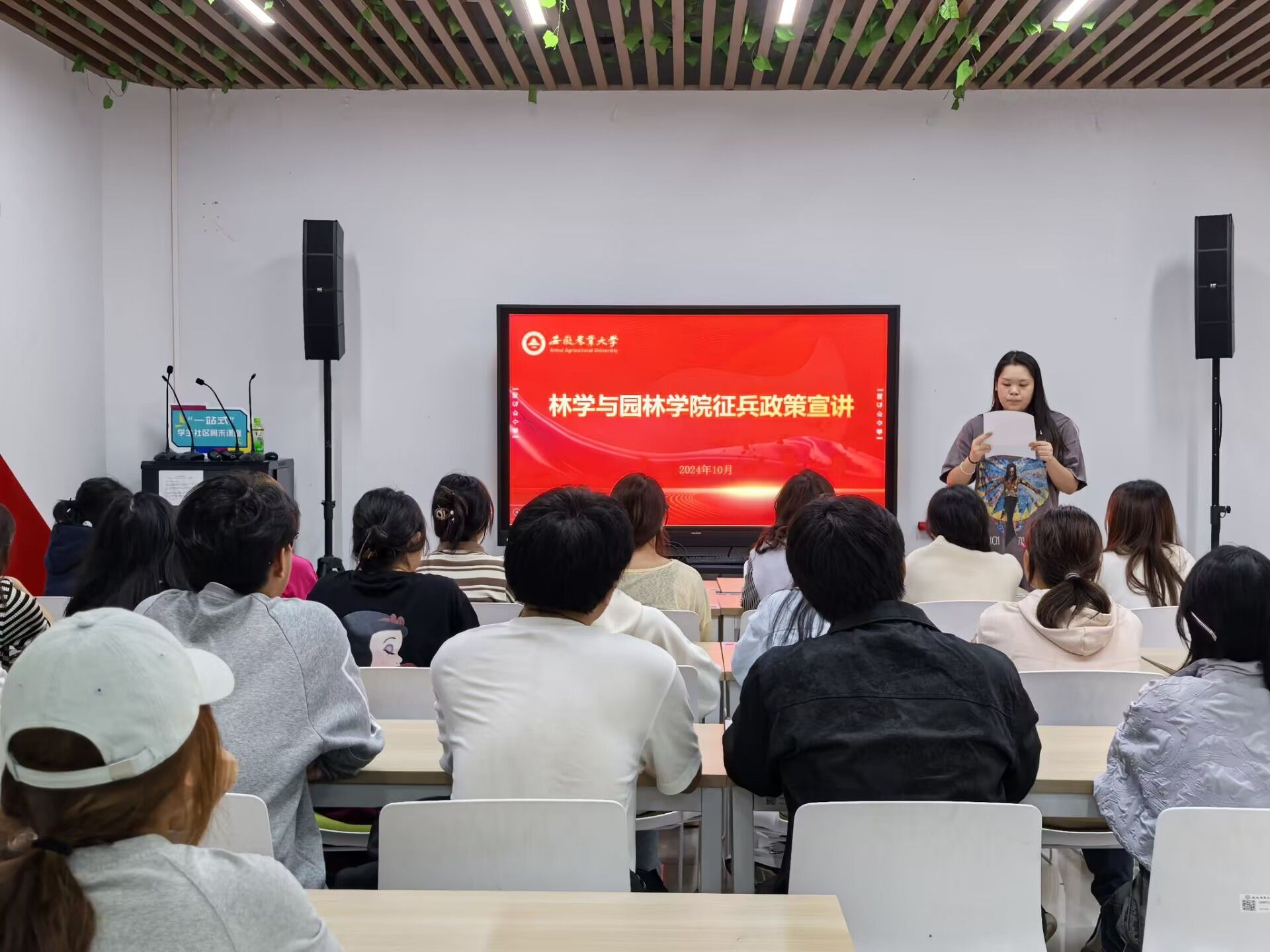 本网讯 10月15日下午,yl6809永利检测中心在一站式员工社区开展了以“风华正茂抒壮志 参军报国正当时”为主题的征兵宣讲会。学院征兵工作负责老师、全院本科员工骨干参加会议。