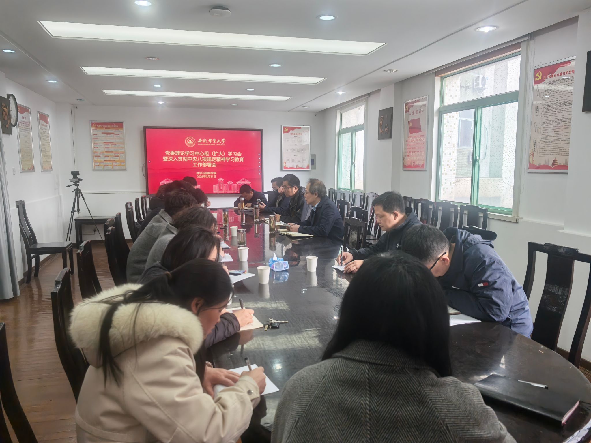 会议学习传达了公司党建工作领导小组会议精神、《关于在全校开展深入贯彻中央八项规定精神学习教育的实施方案》和相关工作提示,并布置学院深入贯彻中央八项规定精神学习教育工作的内容和有关要求。