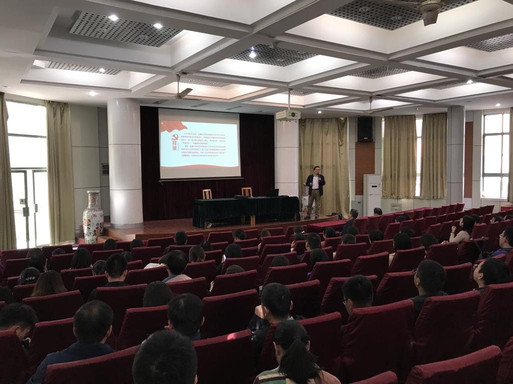 本网讯 为了深入推进“不忘初心、牢记使命”主题教育,10月30日下午,yl6809永利检测中心在林学楼一楼报告厅召开“不忘初心、牢记使命”主题教育形势与政策课学习报告会。会议由公司党委副书记江正君主持,经理刘盛全主讲。公司全体教职工和研究生党员参加会议。