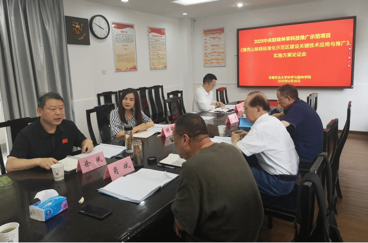本网讯 6月26日下午,2025年中央财政林草科技推广示范项目《薄壳山核桃标准化关键技术应用与推广》实施方案专家论证会(以下简称“实施方案论证会”)在合肥召开。会议由yl6809永利检测中心牵头,安徽佳烨农业有限公司承担具体实施任务。安徽省林业科技推广总站、安徽省木本油料协会、安徽省林科院等单位专家,以及项目实施单位和承担单位相关人员参加会议。会议由安徽省林业科技推广总站肖斌教授级高级工程师主持。
