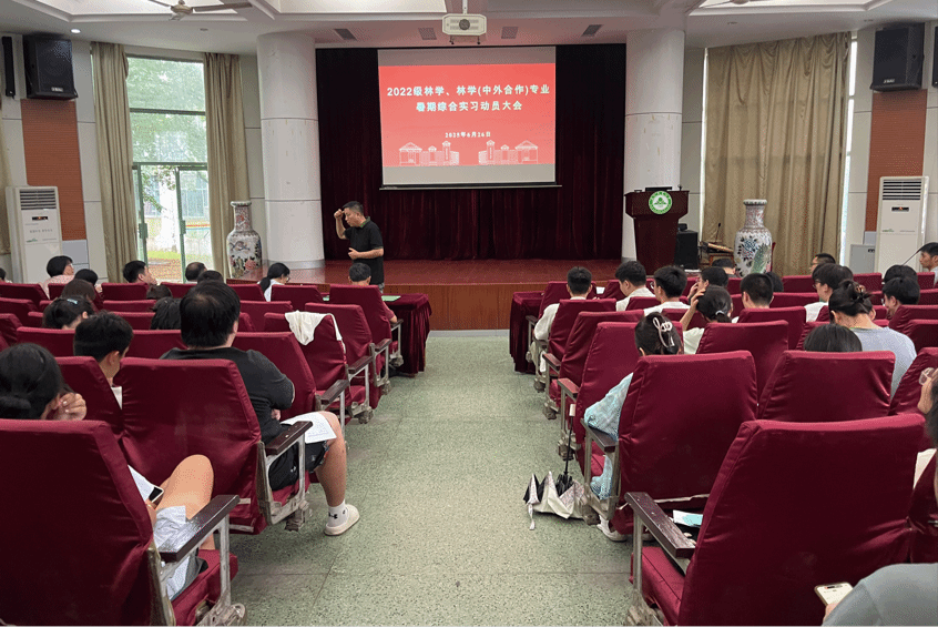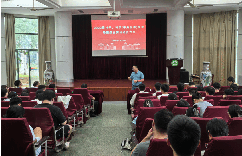 本次暑期综合实习计划于7月1日开始,在东至县梅城林场和安庆市怀宁县的皖西南综合试验站展开,内容涵盖土壤学、树木学、测树学、林业遥感、森林/经济林昆虫学、森林生态学、林木/经济林育种学等。本次动员大会的召开,不仅为即将奔赴实习一线的师生们统一了思想、明确了方向,也为本次实习的顺利开展奠定了坚实基础。相信在学院的有力支持、实习教师的精心指导及全体同学的共同努力下,实习必将取得圆满成功,同学们也将在绿水青山间的实践中不断成长,未来为守护绿色生态屏障、推动林业现代化建设贡献青春力量!(图文/王静 冯春 编辑/任丽丽 初审/陈枫 审核/江正君)