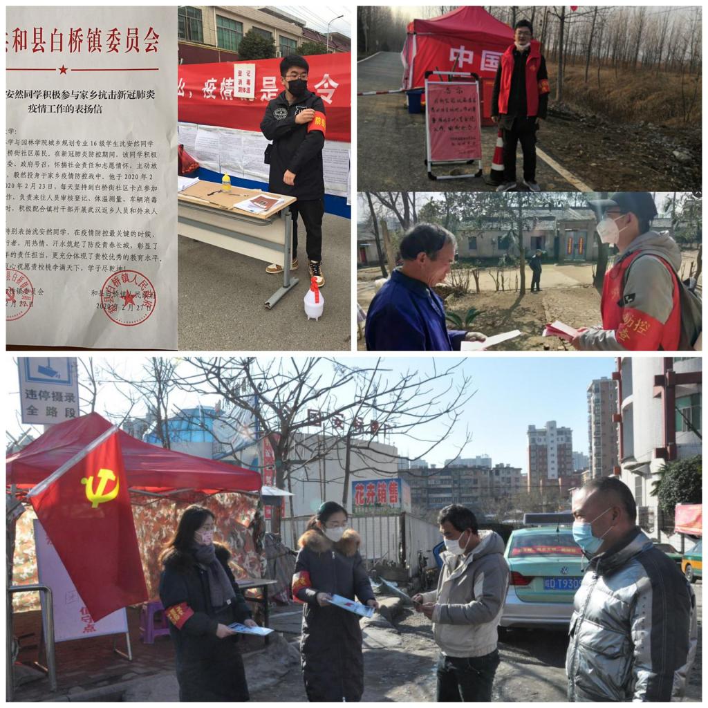2019级林学专业研究生左睿韬协助社区防疫工作者入户调查,筛查发热病人并及时送医;2017级林学专业研究生周旺协助当地政府进行卡点值守、测量体温、统计信息并维持秩序;2017级城乡规划专业张子建庄重地写下了抗疫请战书,与医护人员、社区干部光荣地站在了抗击疫情第一线。