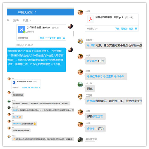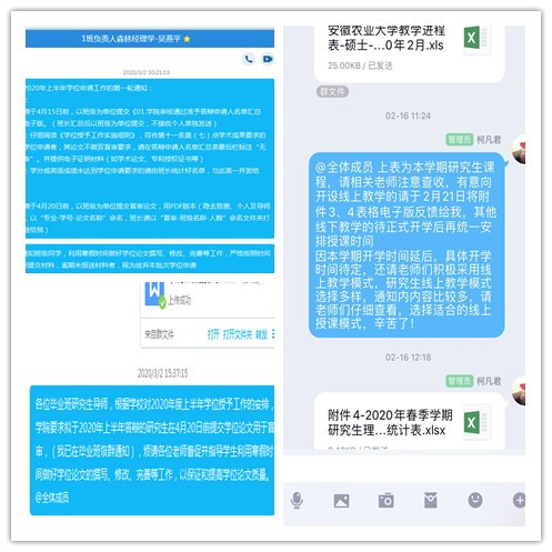 公司各系部任课教师,自疫情发生以后,就积极谋划网络教学,在学院的指导下,通过多个途径实施线上教学的,建立qq群,实行上课打卡,保持老师与员工的密切联系。林学一流专业负责人黄庆丰教授以身作则,率先摸索线上教学方法,从超星录播教学到腾讯课堂直播教学,不断试讲,哪个效果好就及时调整到哪种方式;曹翠萍老师尽管年龄较大,但接收新鲜事物的尽头十足,几乎每天都与雨课堂技术平台联系,虚心求教,及时反馈、咨询;一批有线上教学经验的老师如武恒、陈名君等主动担当起线上教学技术指导,不厌其烦,有问必答。经一周多的授课,学院督查、收集师生线上教学意见,师生普遍反馈,相比于线下教学,师生互动机会增加了不少,教学效果良好。