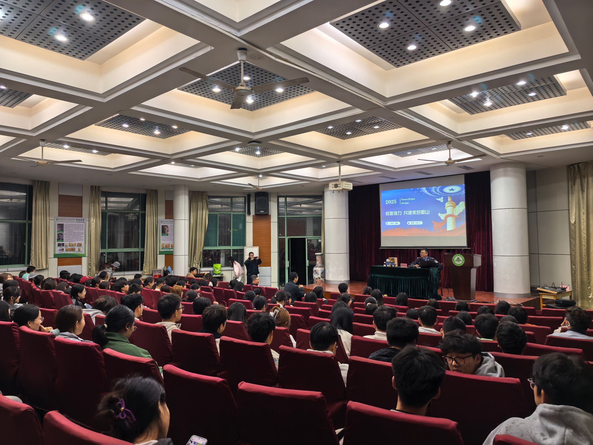 讲座中,费翔警官结合其丰富的反诈工作经验,深入浅出地介绍了当前高发的各类电信网络诈骗手法,包括刷单返利、冒充客服、虚假购物服务、“杀猪盘”投资理财、冒充公检法、网络贷款等。他通过真实案例详细剖析了诈骗分子的作案心理、话术套路和关键环节,生动揭示了诈骗行为的危害性,并重点讲解了“不听、不信、不转账”的防范要点及遭遇诈骗后的正确处置流程和报警渠道。陈枫在总结发言中对费翔警官的精彩讲授表示衷心感谢,他强调,在当前复杂多变的网络安全形势下,加强反诈宣传教育具有极端重要性与现实紧迫性,他呼吁全院师生切实提高警惕,共同筑牢校园安全防线。